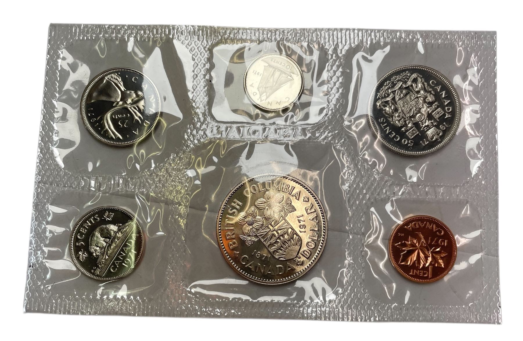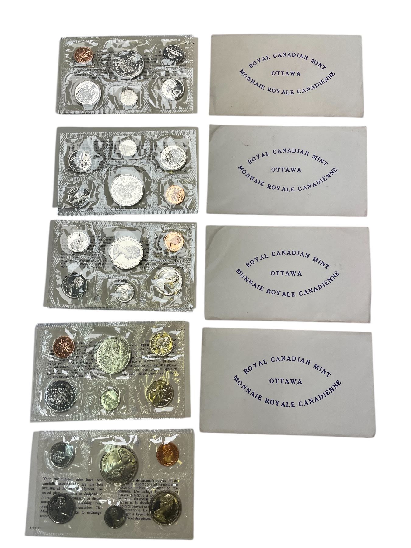 5 Sets Of Uncirculated 1971 Canadian Coin Sets: Dollar, 50 Cent, Quarter, Dime, Nickel, & Penny