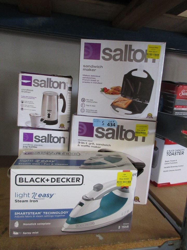 Frother, sandwich maker, kettle, sandwich grill & iron.