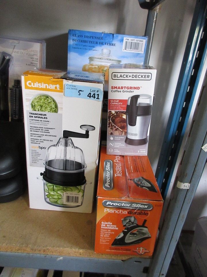 Glass beverage dispenser, coffee grinder, iron & spiralizer.