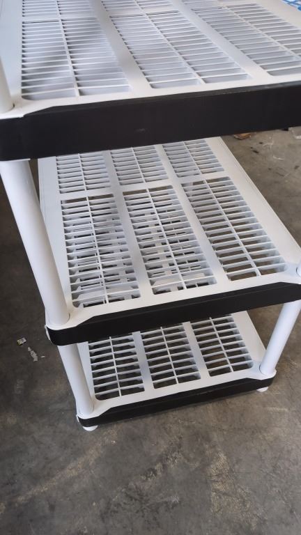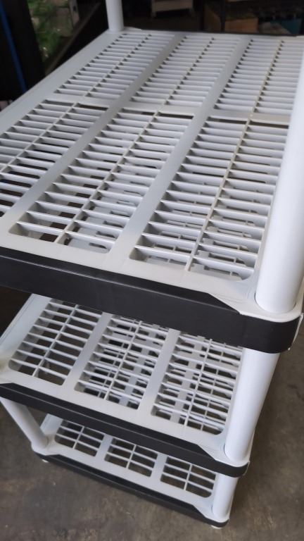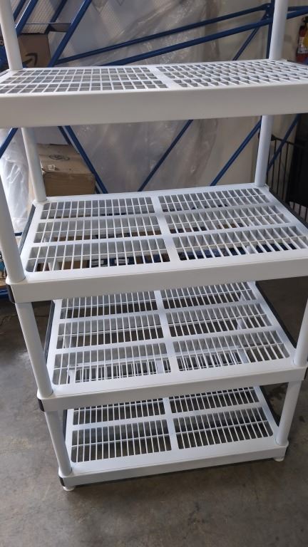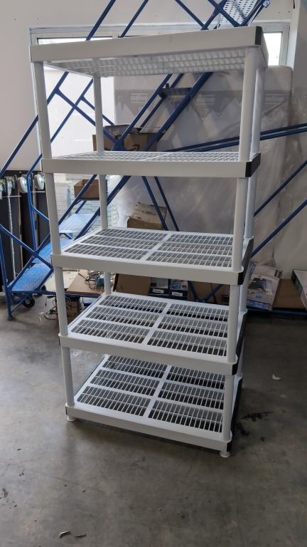 5 TIER PLASTIC STORAGE SHELF, 2' X 3' X 6' TALL