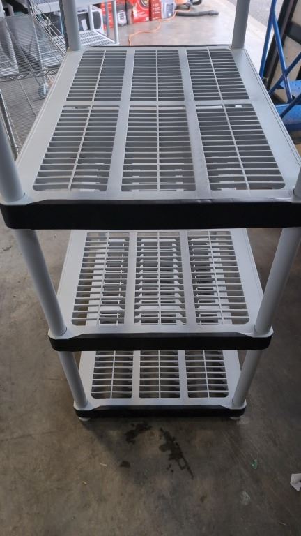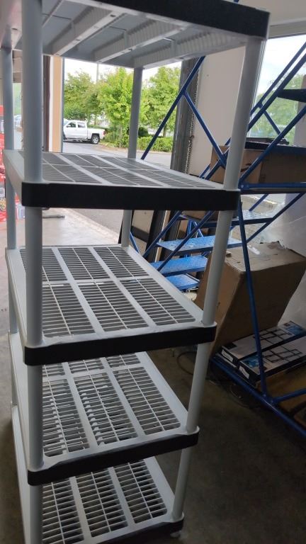 5 TIER PLASTIC STORAGE SHELF, 2' X 3' X 6' TALL