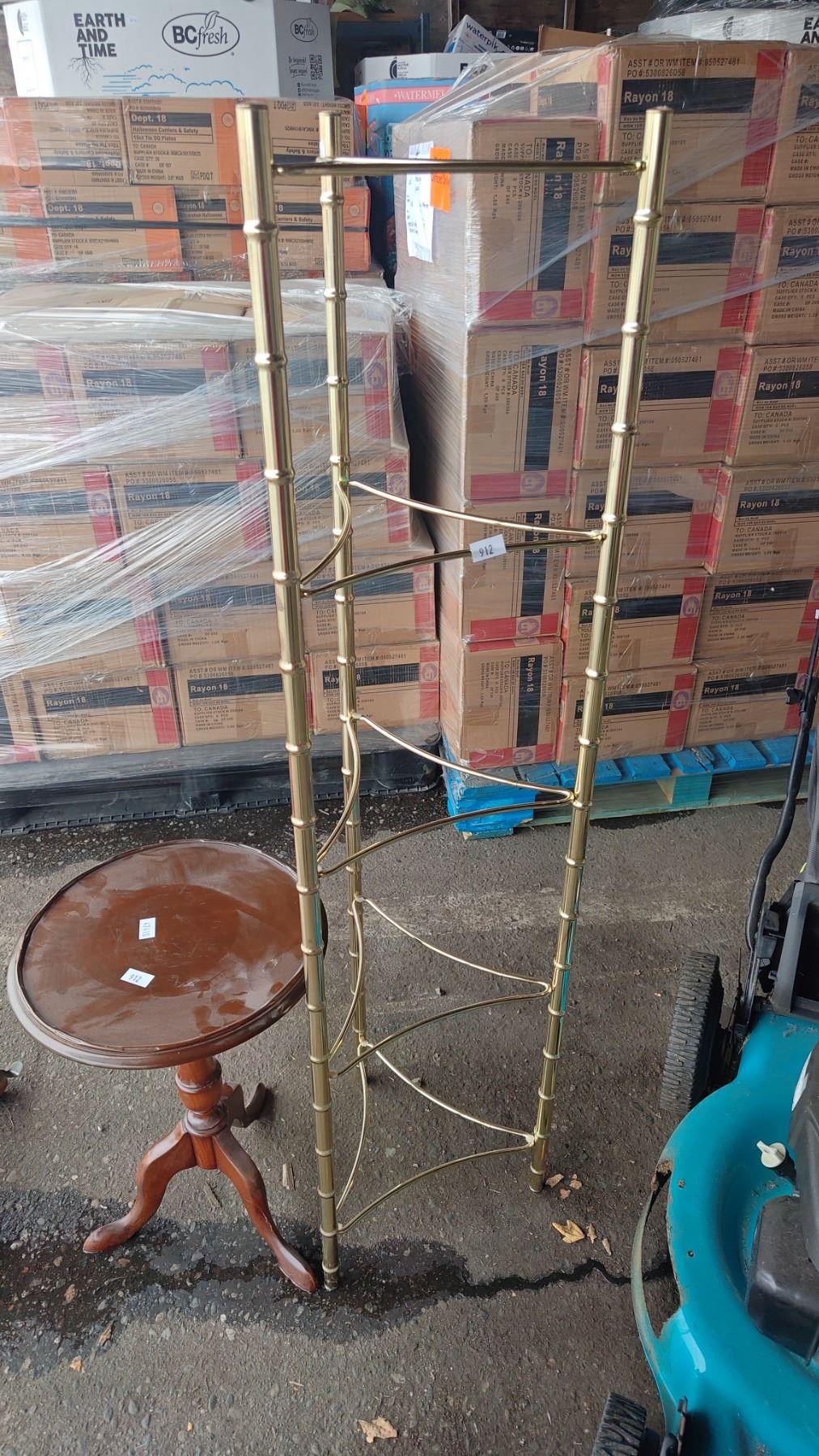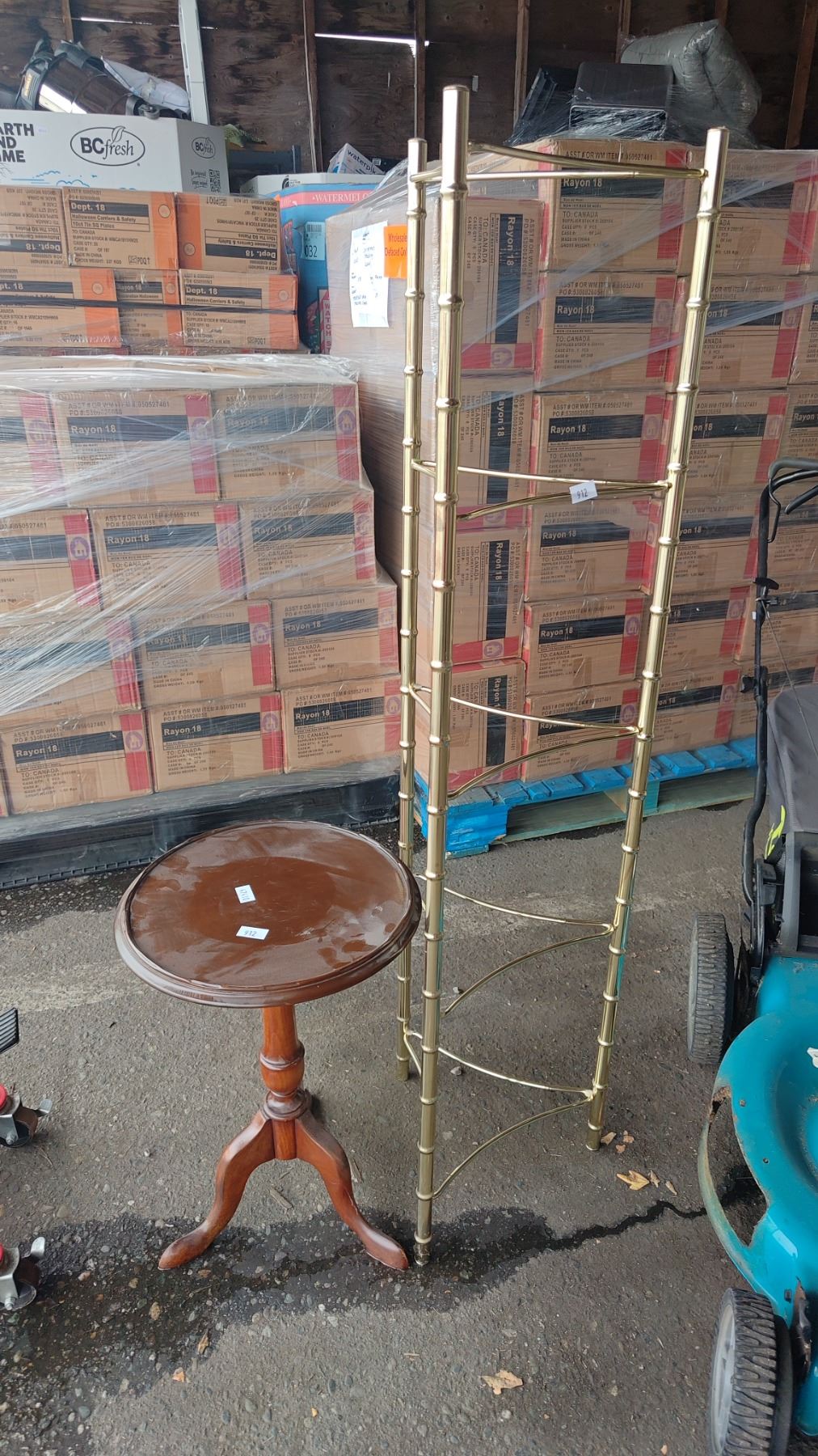 5 TIER SHELVING UNIT (NO SHELVES) & SMALL ROUND END TABLE
