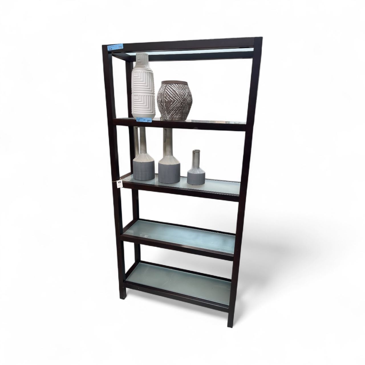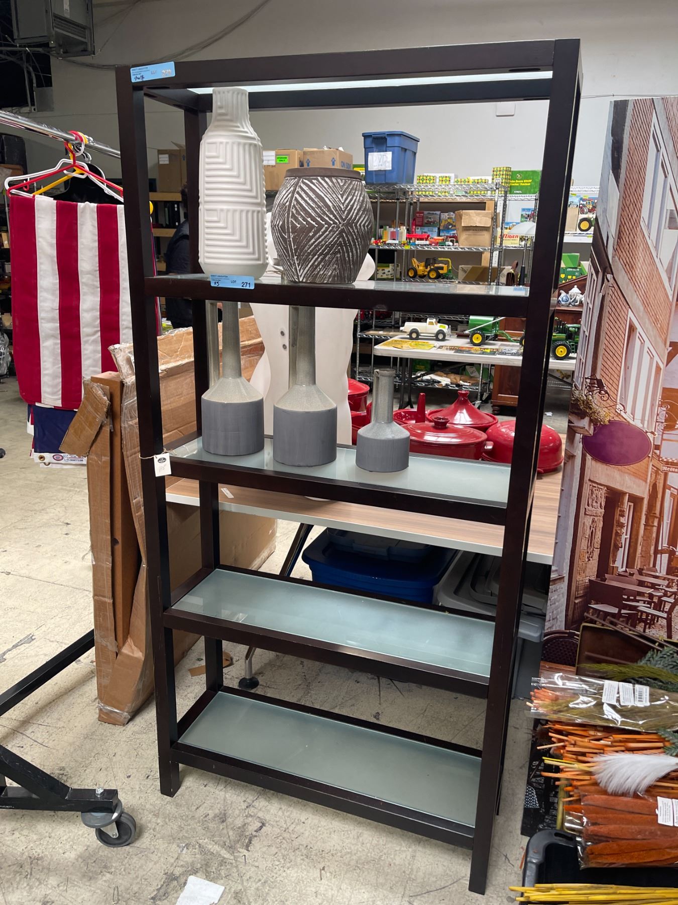 5-Tiers Wooden Modern Shelf w/ Glass Top - Retail Value $694.100