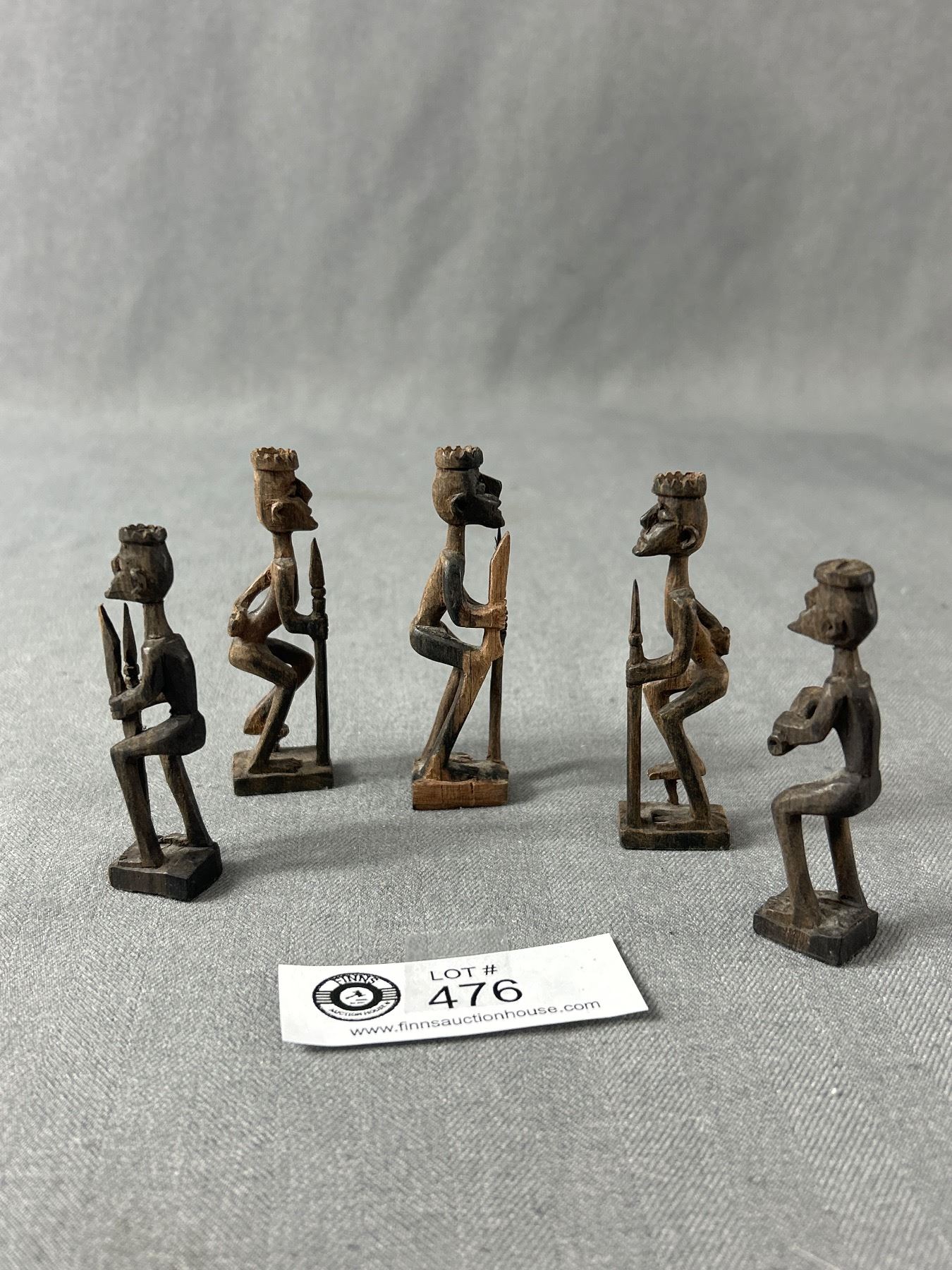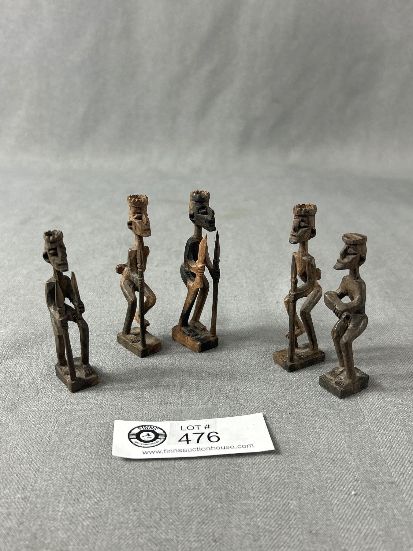 5 Vintage Hand Carved African Wood Figurines