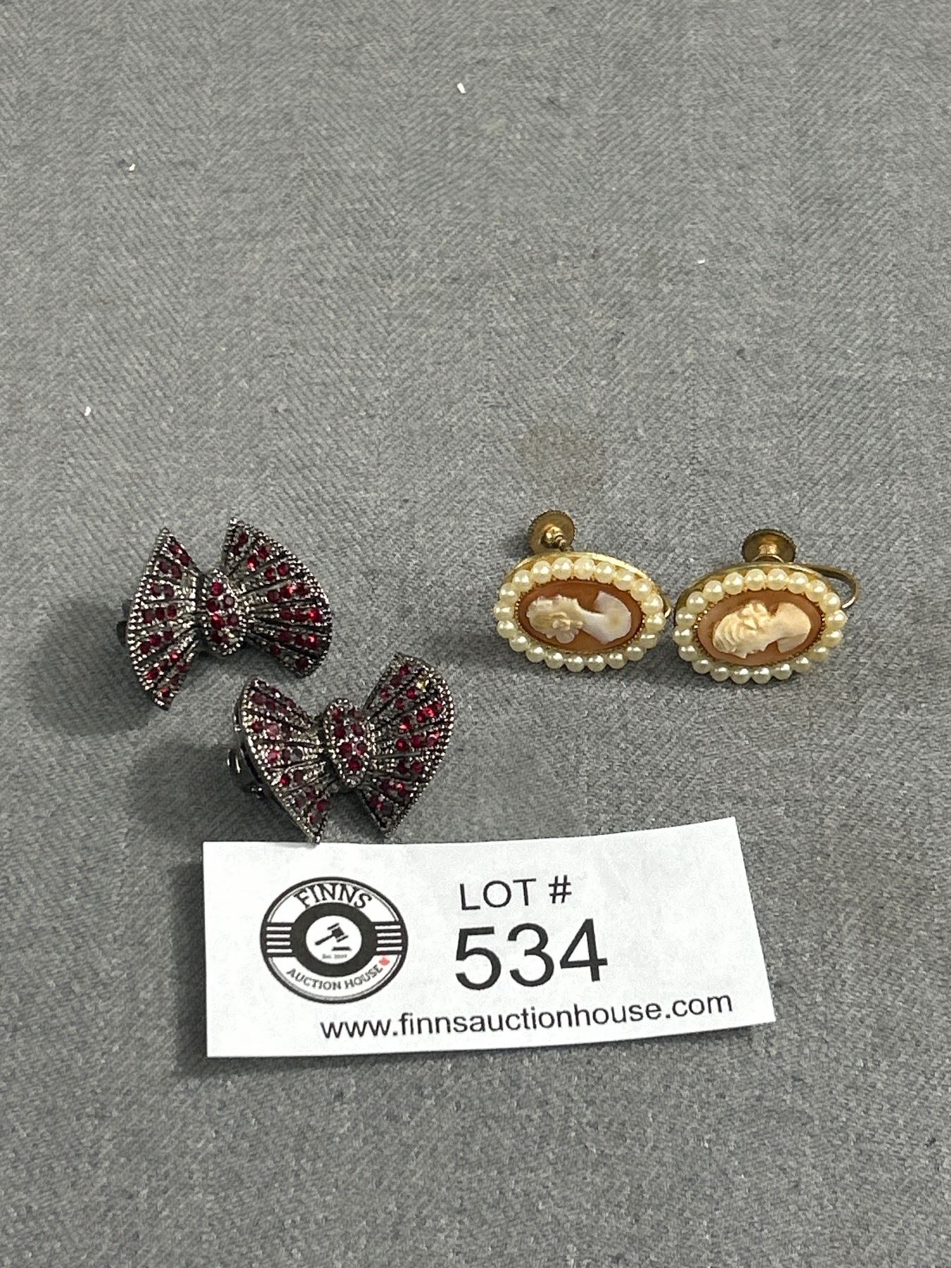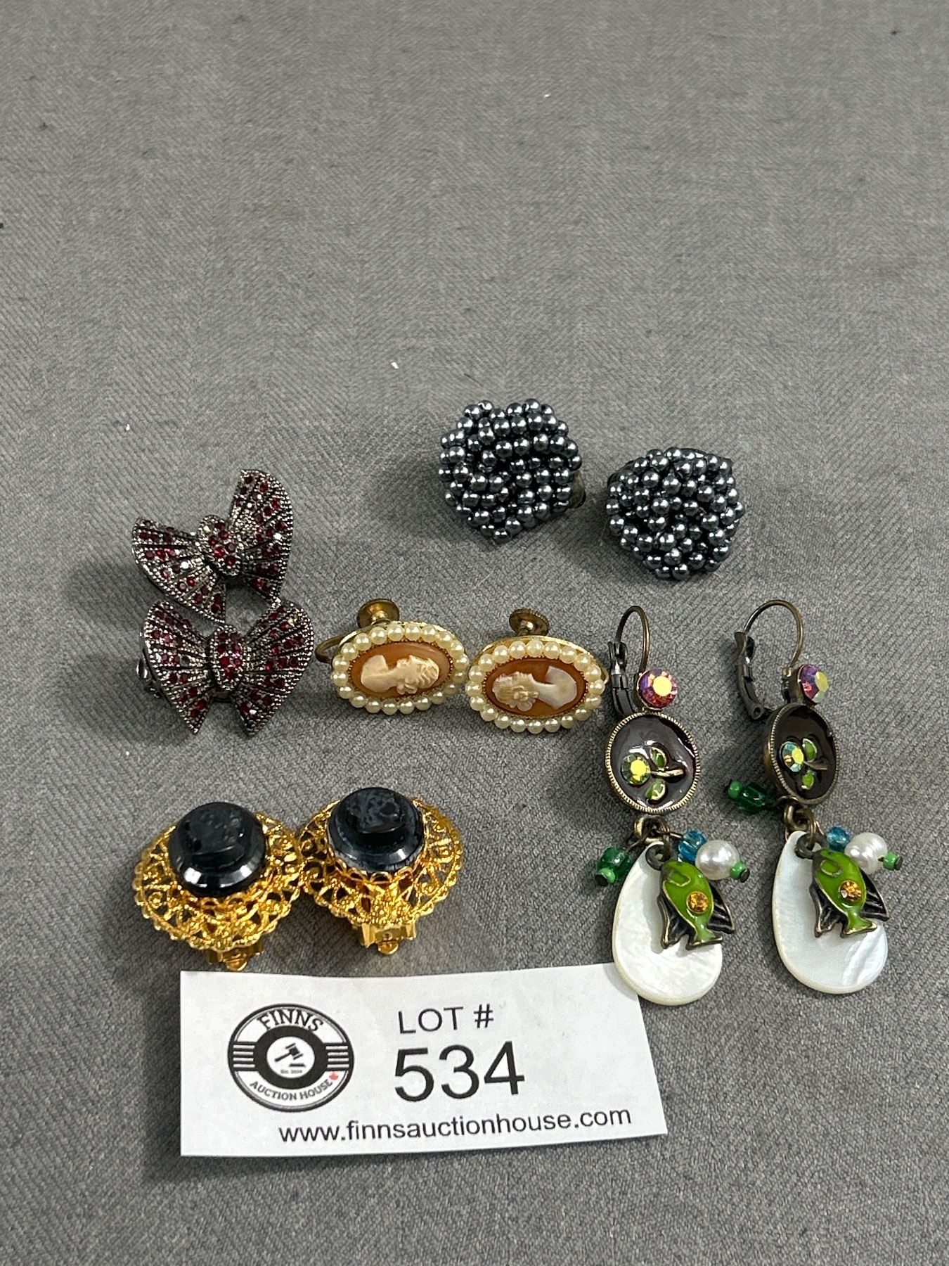 5 Vintage Pairs of Earrings, Some Cameo Design