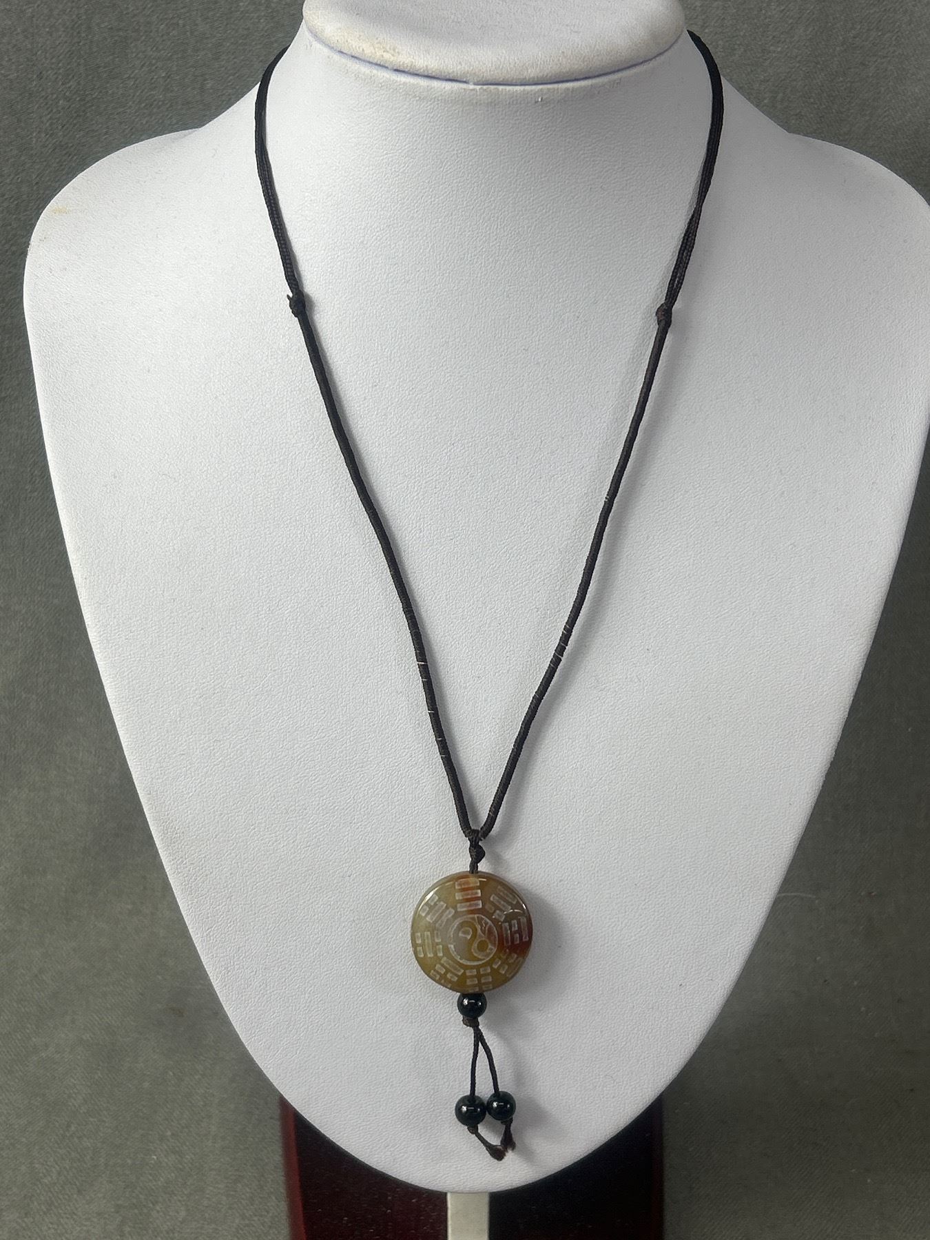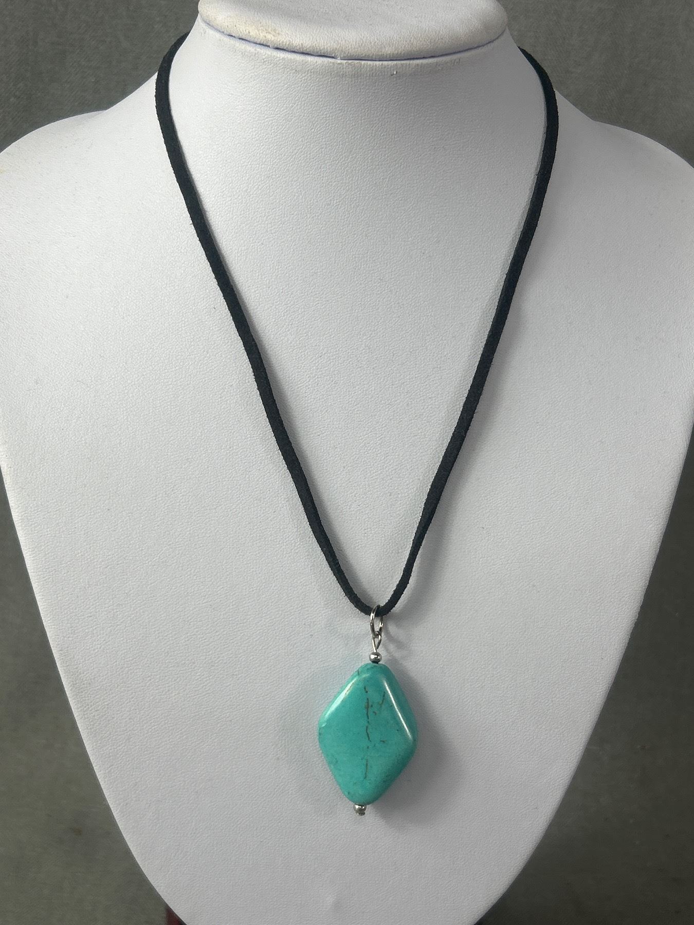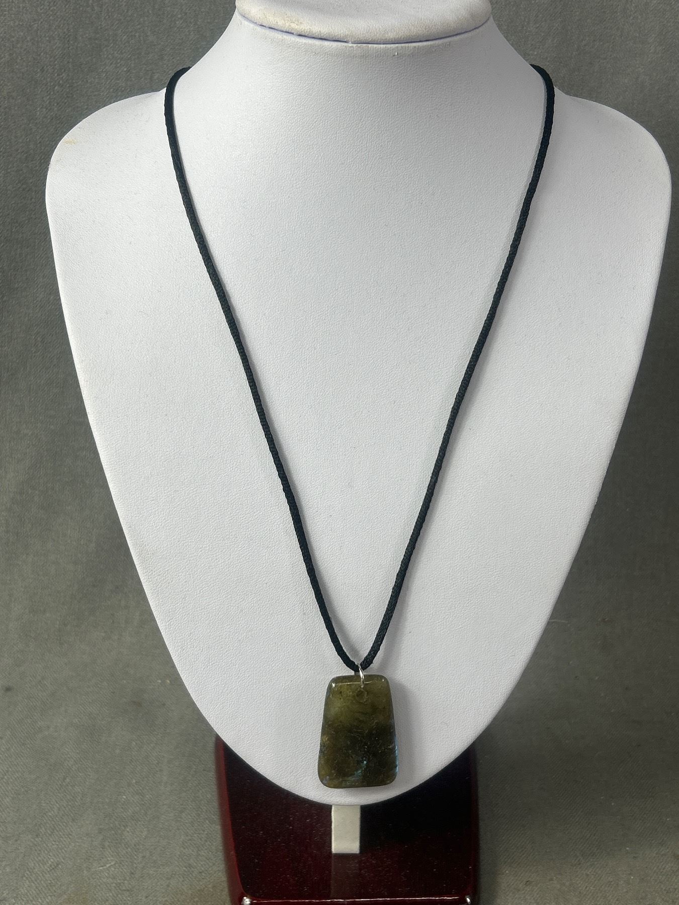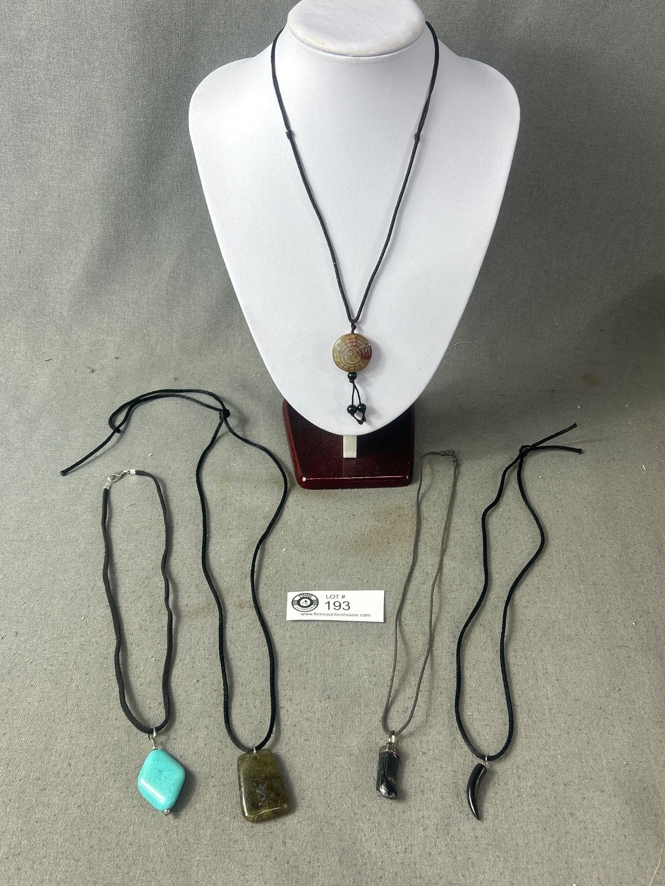 5 Vintage Pendants On Cord Necklaces, Black Coral, Turquoise, Jade Labradorite, Fossil