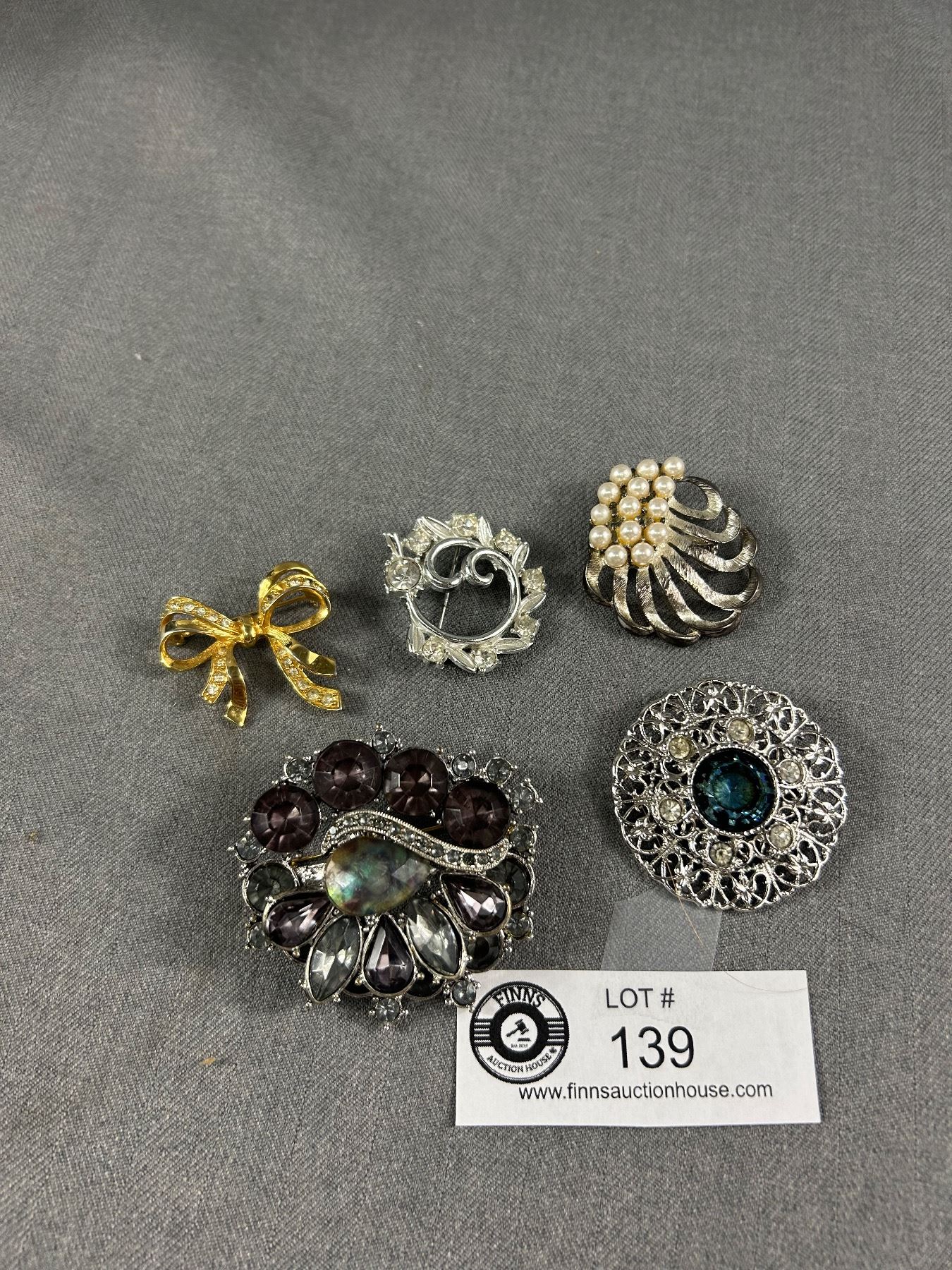 5 Vintage Rhinestones Brooches