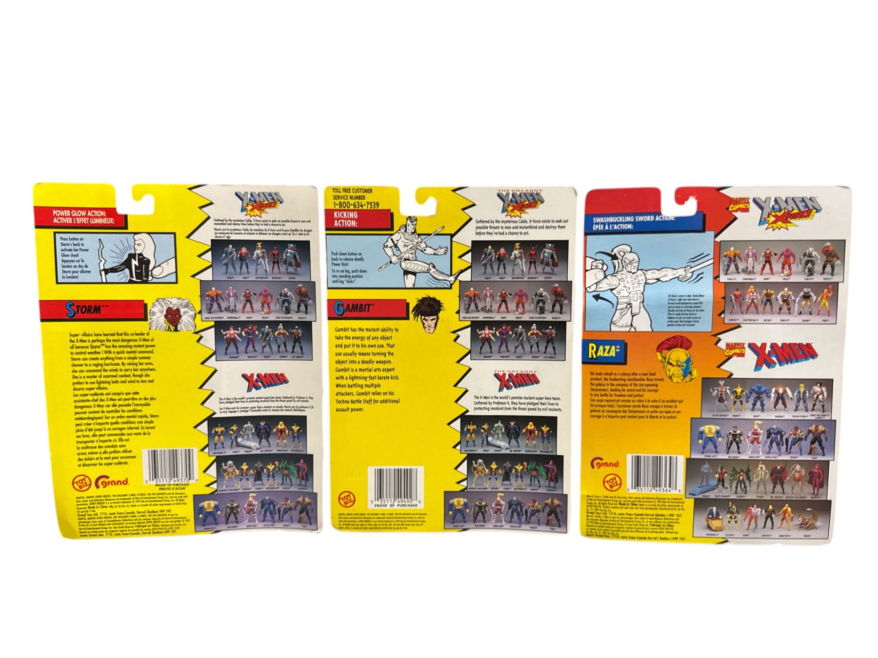 5 Vintage Unopened X-Men Action Figures: Cyclops, Raza, Gambit, Senraya, & Storm