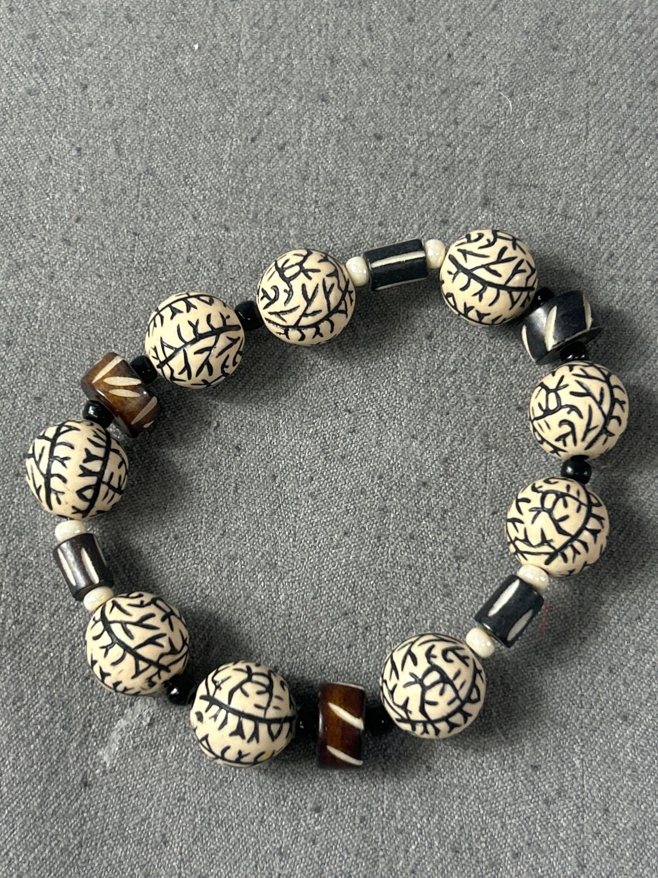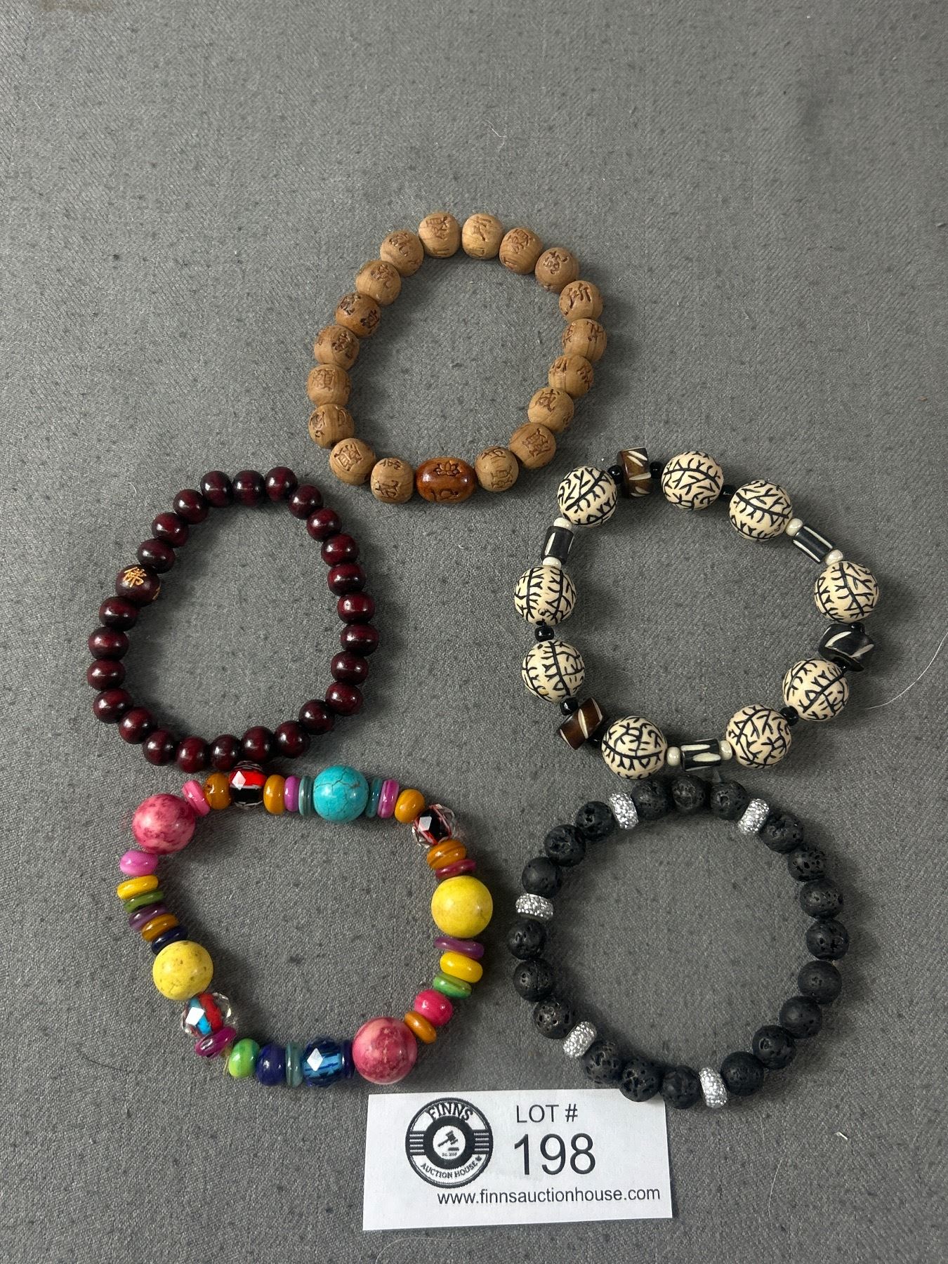 5 Vintage Wood/Volcanic Ash & Others Beads Bracelets