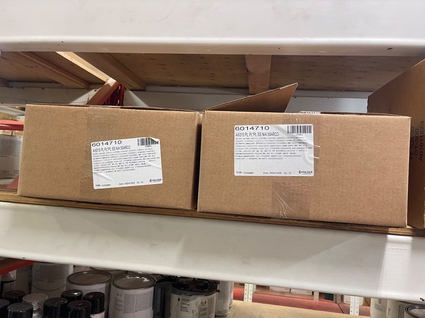 5 boxes of empty silver paint tins new approx. 250 pcs
