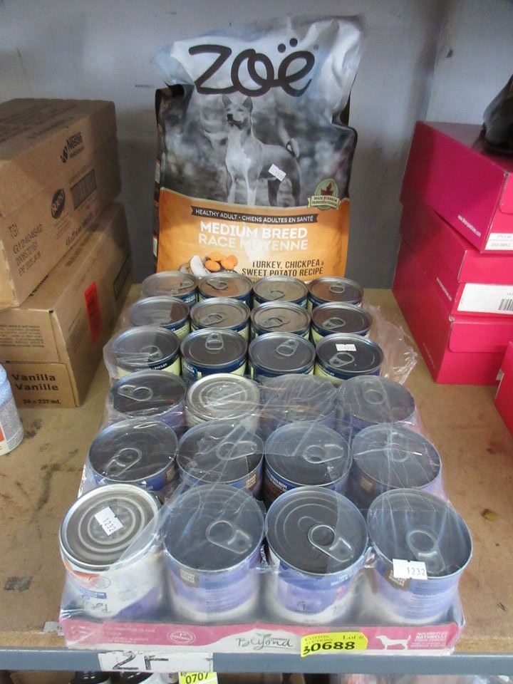 Zoe medium breed turkey, chickpea & sweet potato dry dog food, case of 12 x 368 g cans of Beyond wet dog food & case of 12 x 364 g cans of Blue wet dog food.