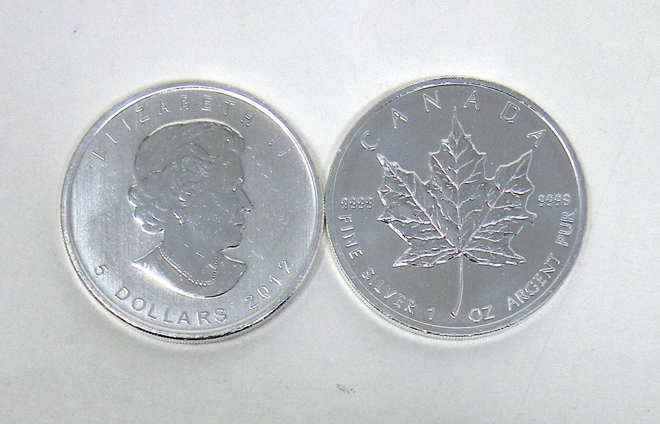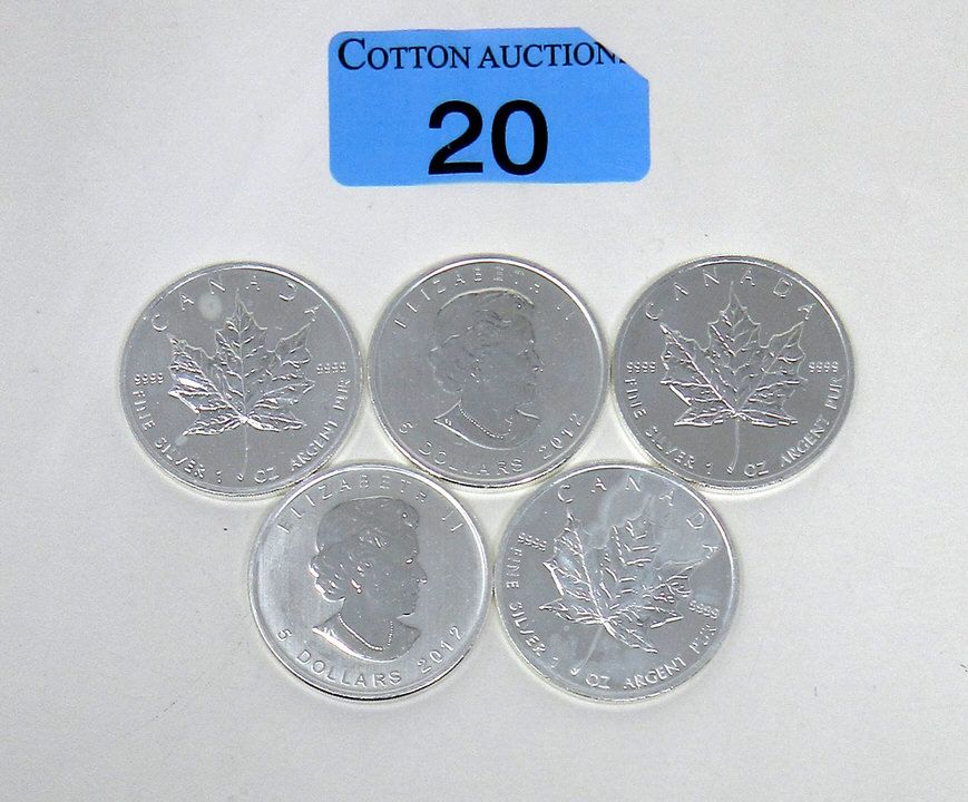 5 x 1 Oz .9999 Silver 2012 Maple Leaf Coins