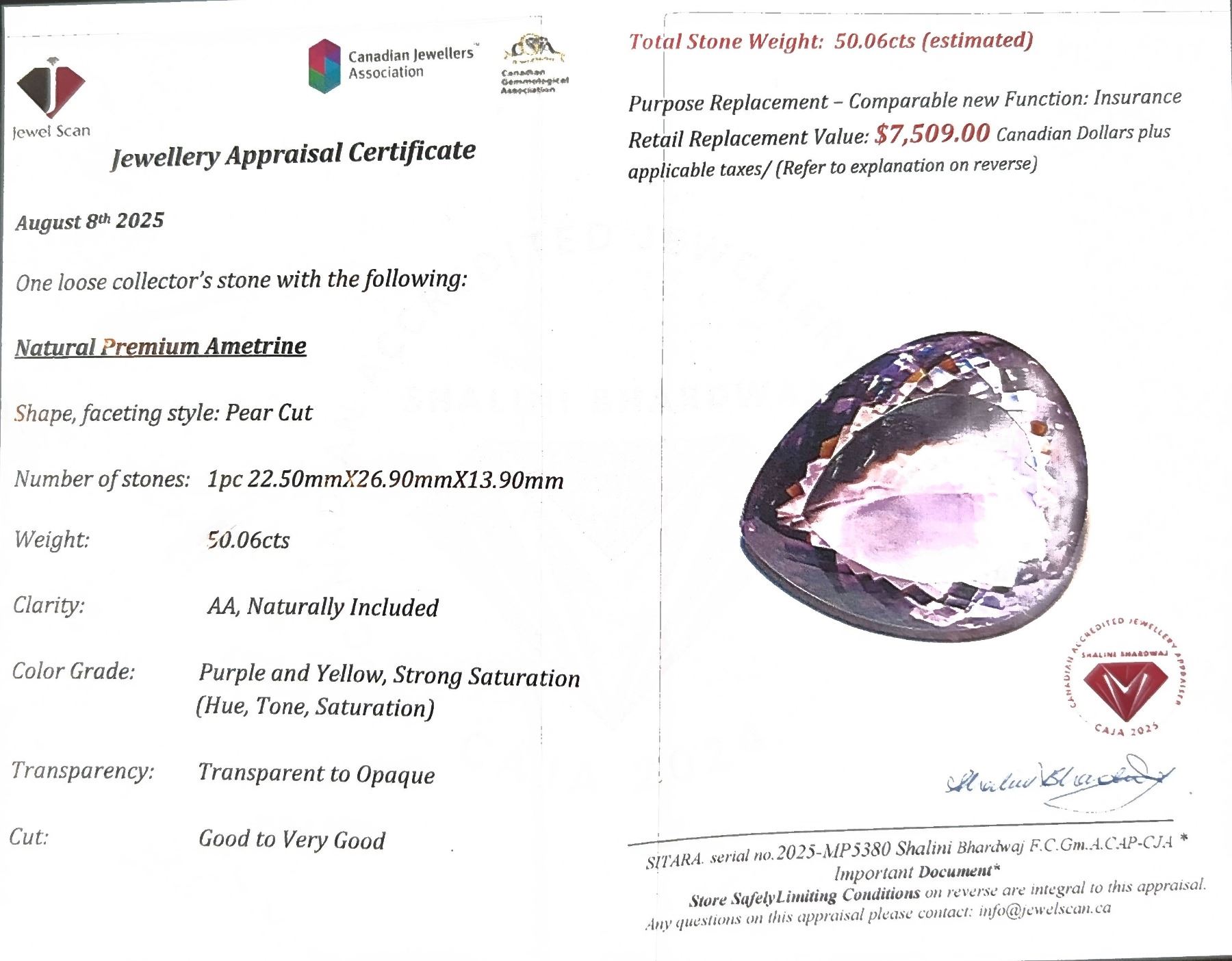50.06 ct Certified Bi-Colour Ametrine gemstone ($7,509 Appraisal)