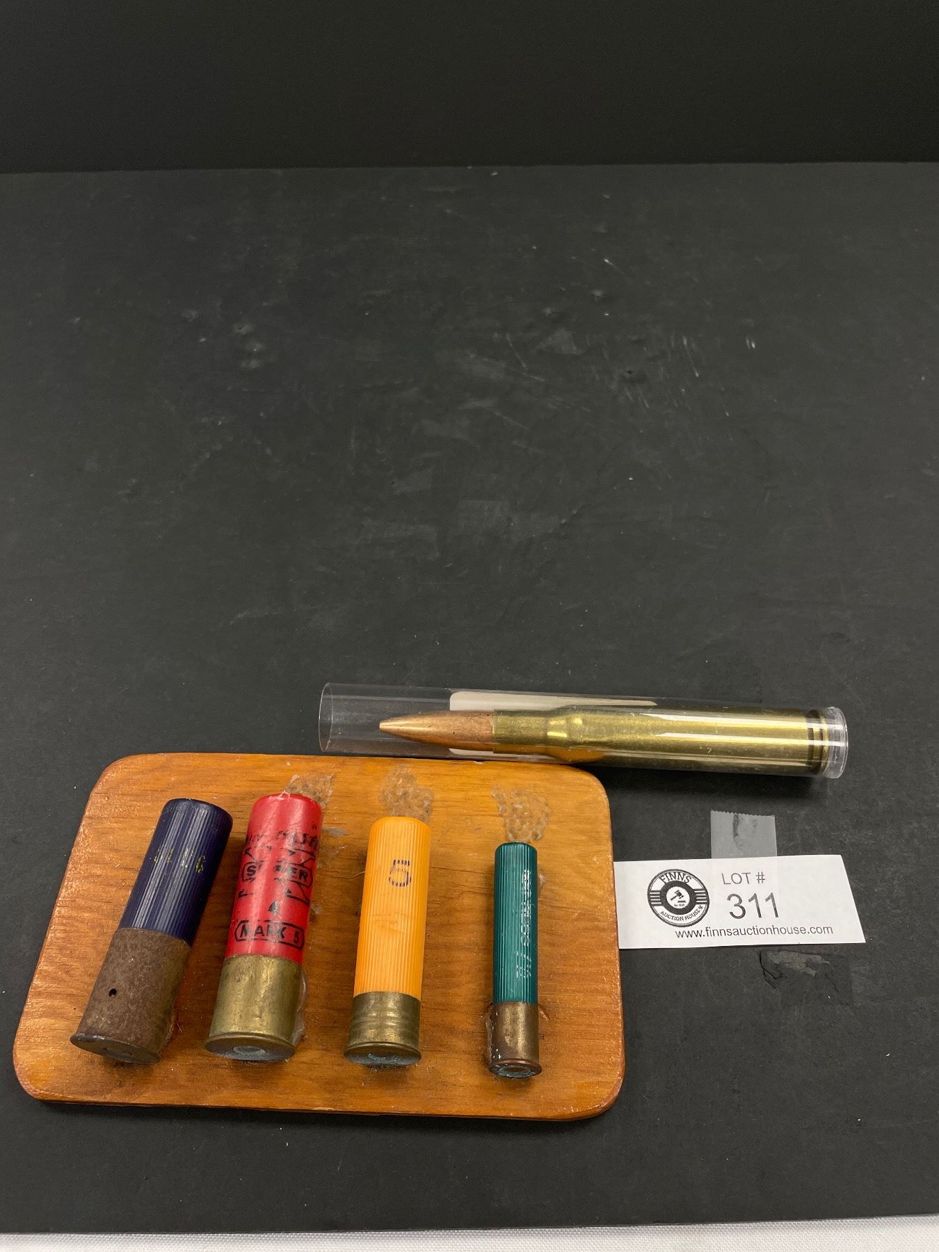 50 Caliber Bottle Opener Plus ShotGun Shells Mounted on Board