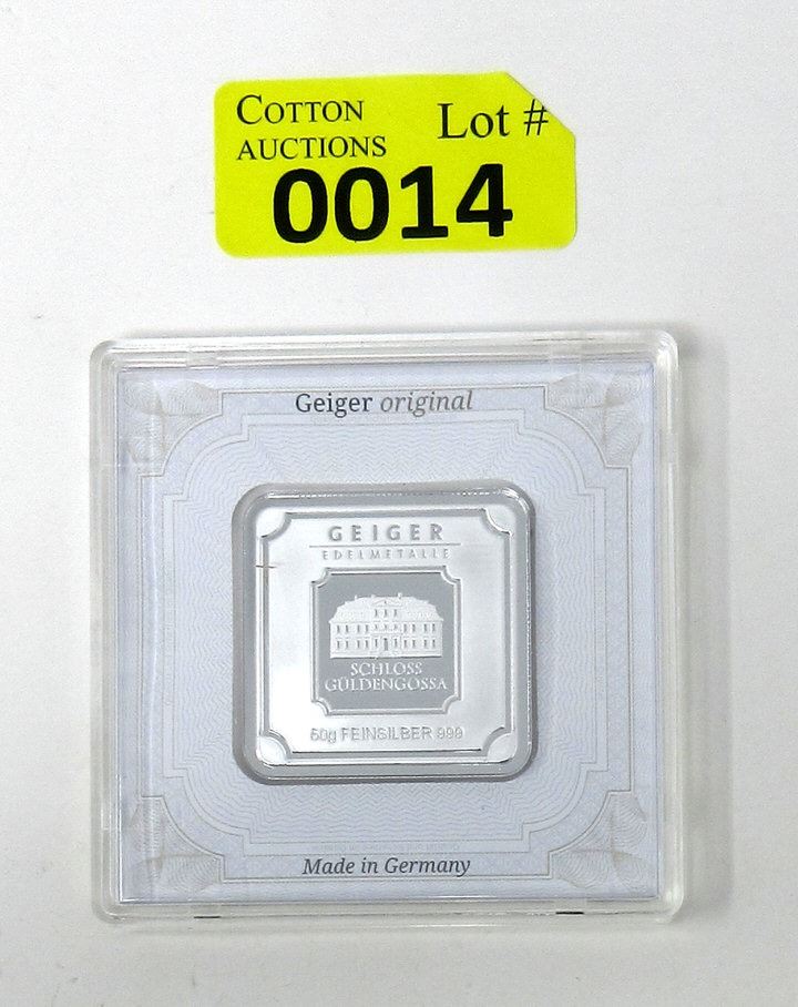 50 Grams .999 Fine Silver Geiger Edelmetalle Bar