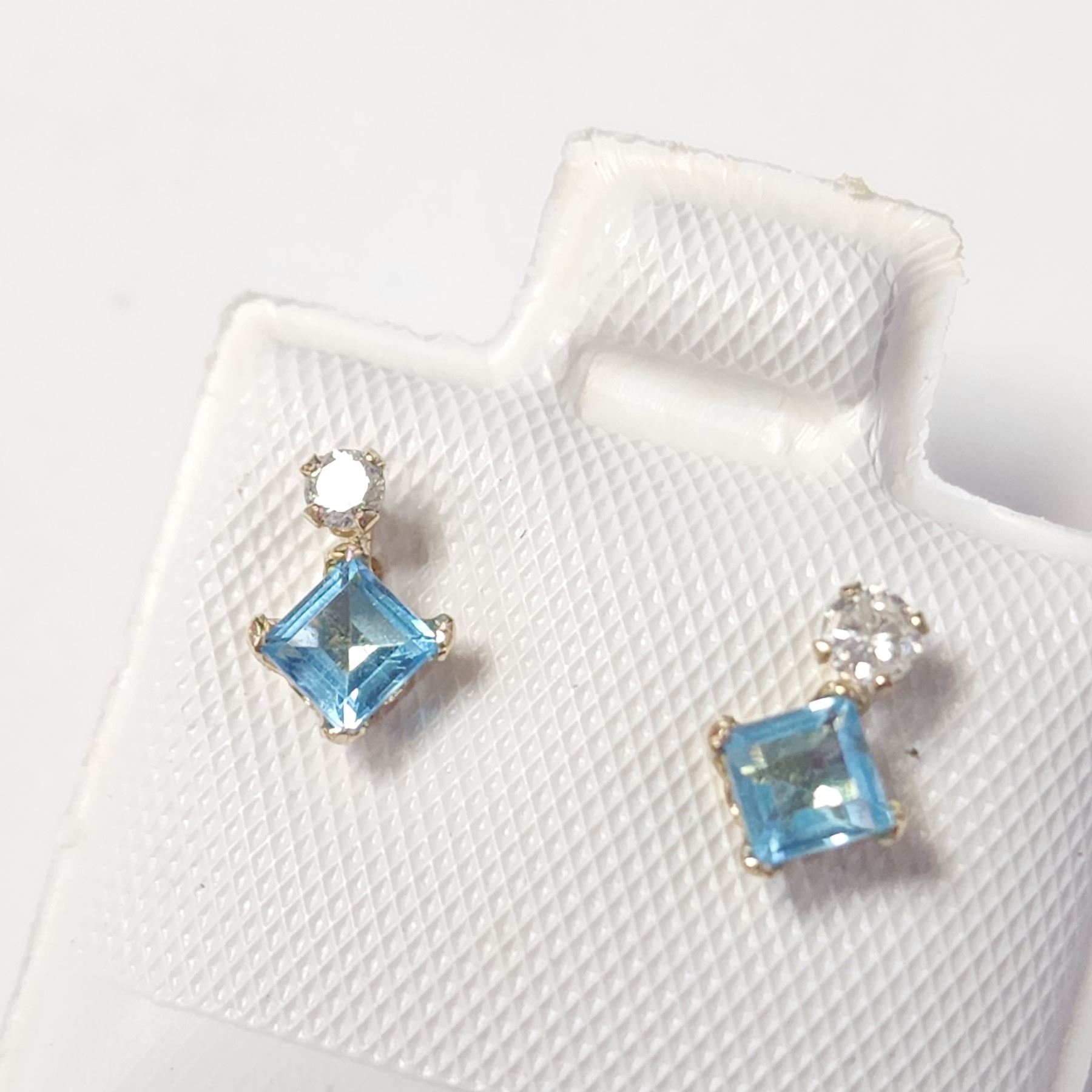 10K Yellow Gold Blue Topaz(0.44ct) Diamond(0.06ct) Earrings, Made in Canada, Suggested Retail Value $500