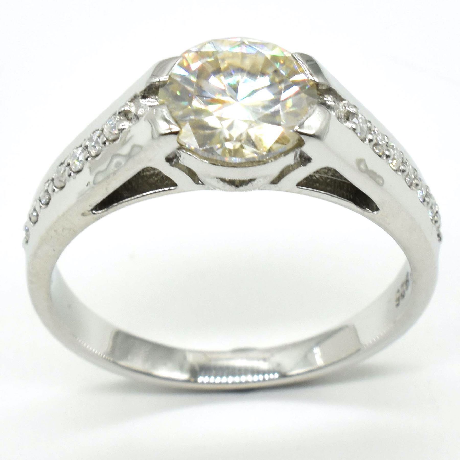 Silver Certified Moissanite (Round 8 & 1.5 Mm)(5.05ct) Rhodium Plated Test And Looks Better Than Diamond Mens Ring Ring (~weight 5.05g)