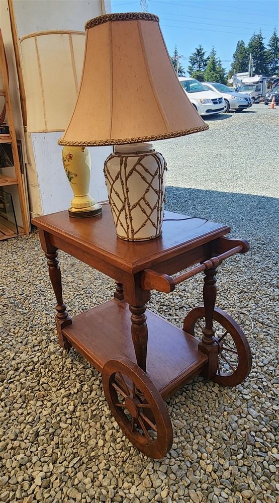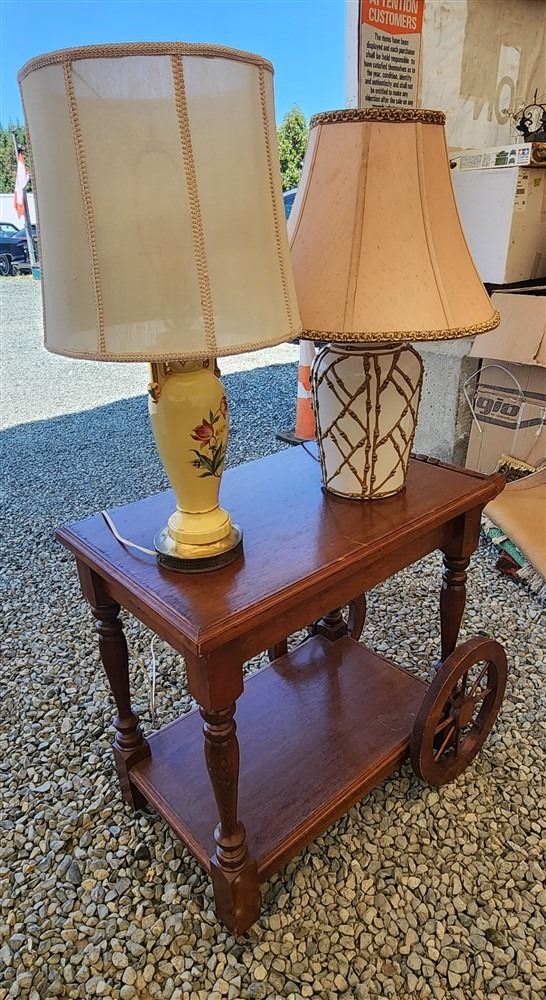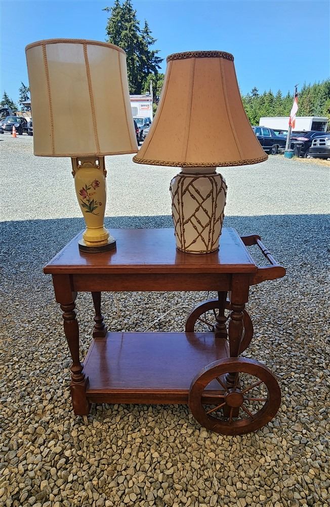 ANTIQUE ROLLING TEA CART WITH 2 LAMPS