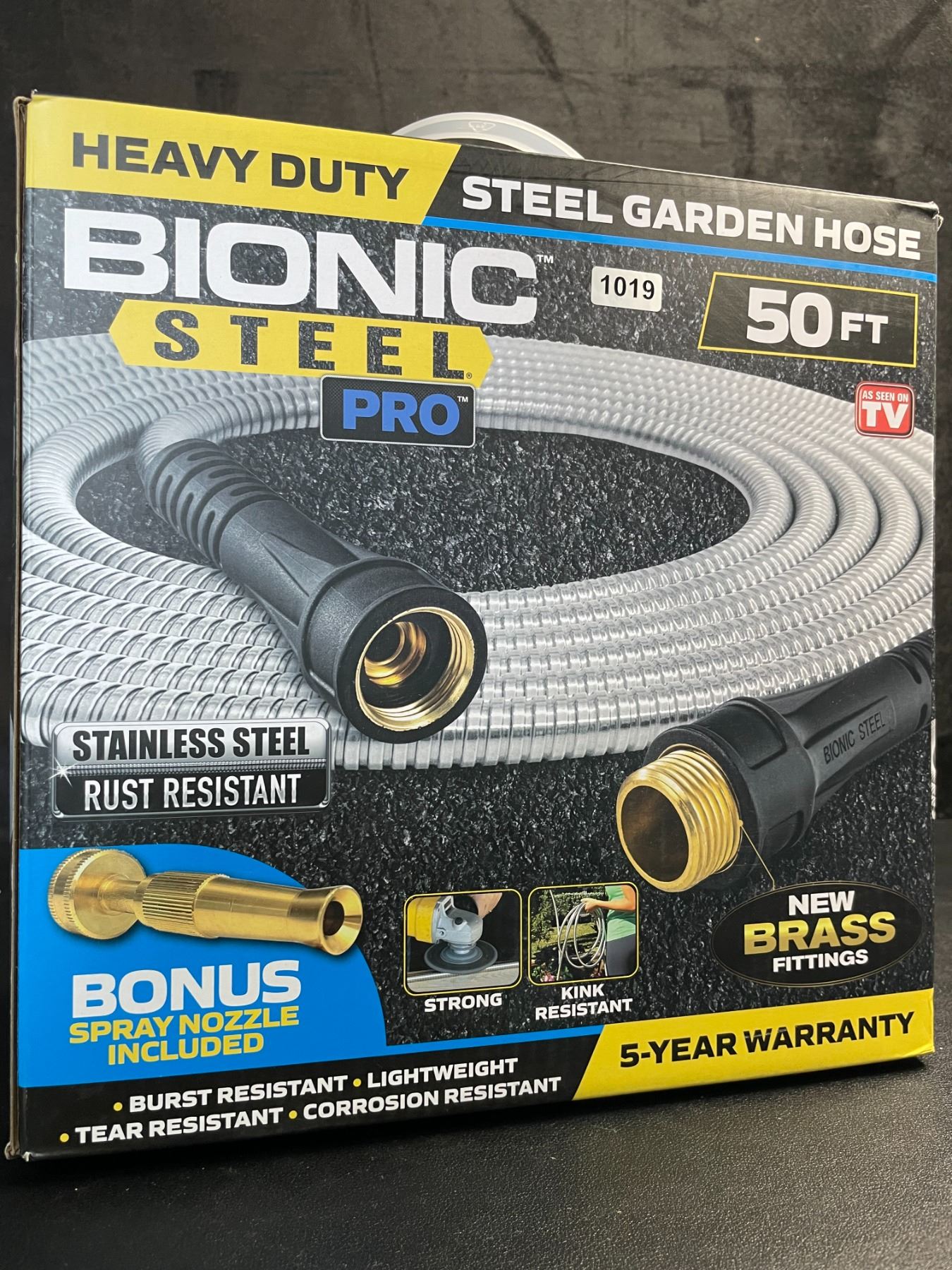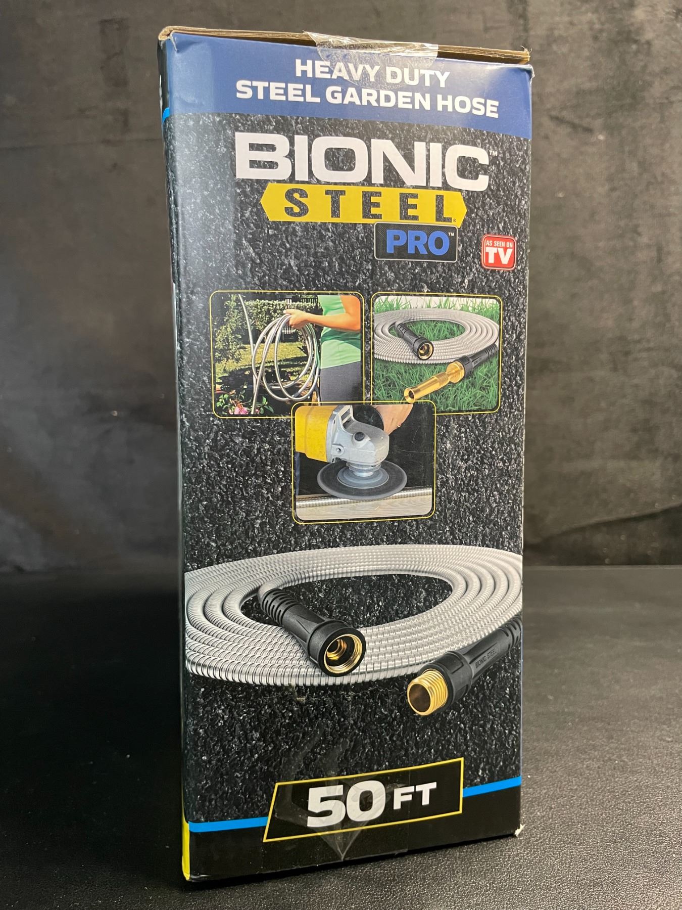 - 50FT steel garden hose with spray nozzle