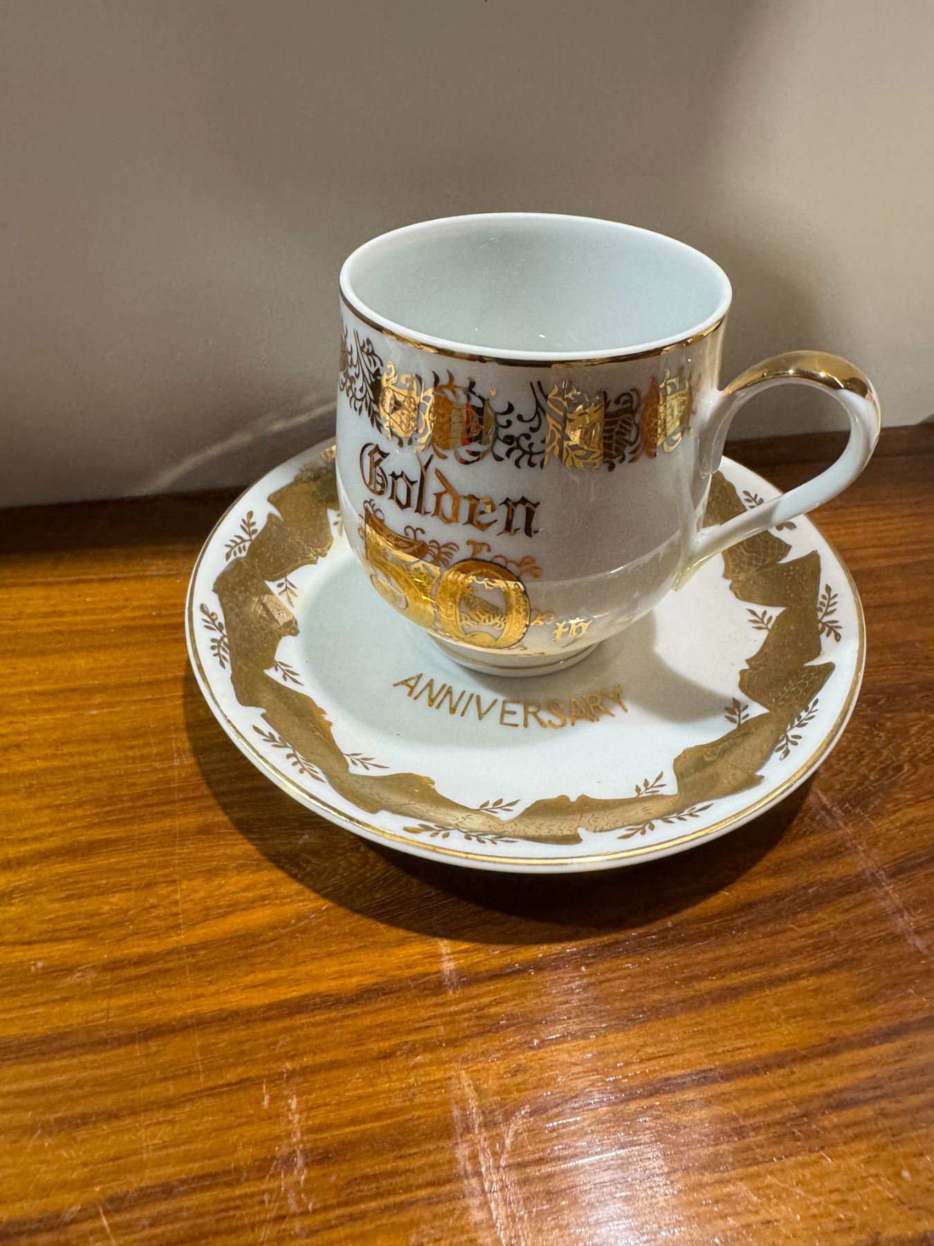 50th anniversary tea, cup, and saucer good morning