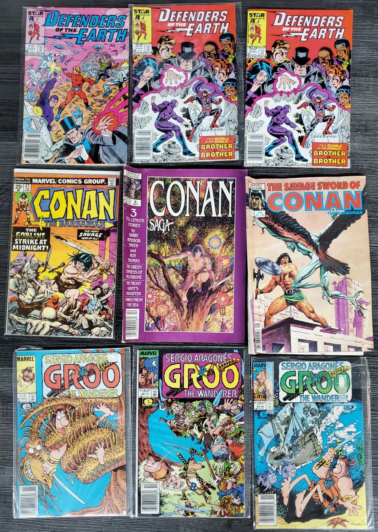 Lot of 6 Vintage Marvel Comics - Various, Inc Defenders, Conan & Groo - 17% Buyer Fee. Payment Processed through Live Auction World ( Visa or Master Card ) pick up Saturday, or Tuesday