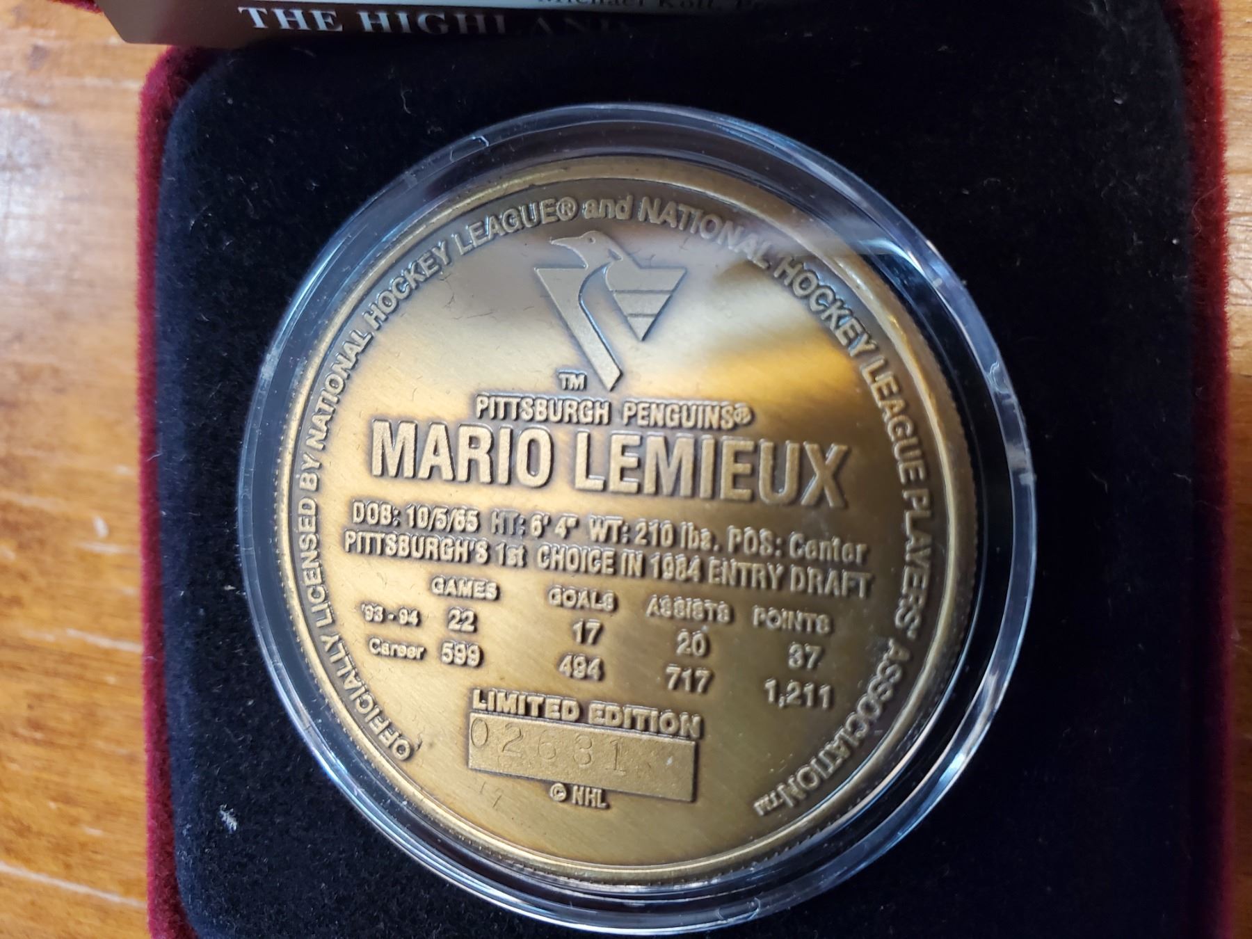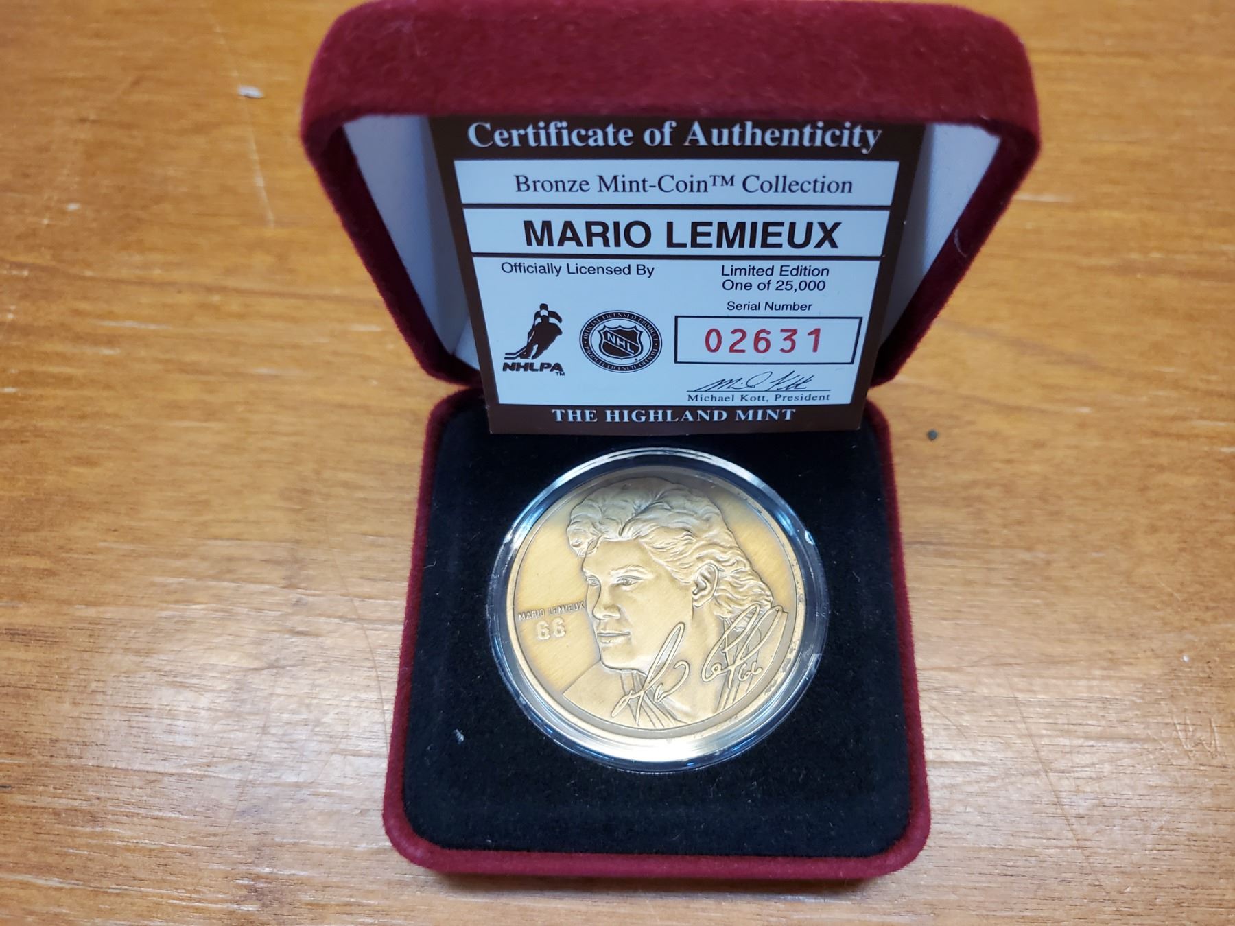 Mario Lemieux Bronze Mint Limited Edition Collector Coin With COA - 17% Buyer Fee. Payment Processed through Live Auction World ( Visa or Master Card ) pick up Saturday, or Tuesday