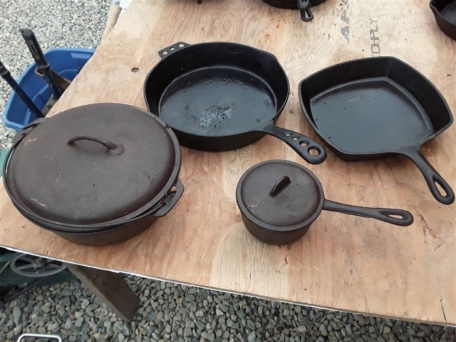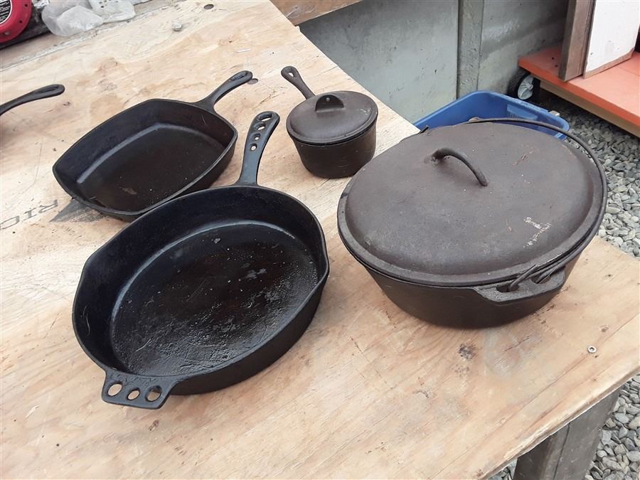 Lot of 4 Cast iron Pots & Skillets - Storage Locker Clean Out - 17% Buyer Fee. Payment Processed through Live Auction World ( Visa or Master Card ) pick up Saturday, or Tuesday