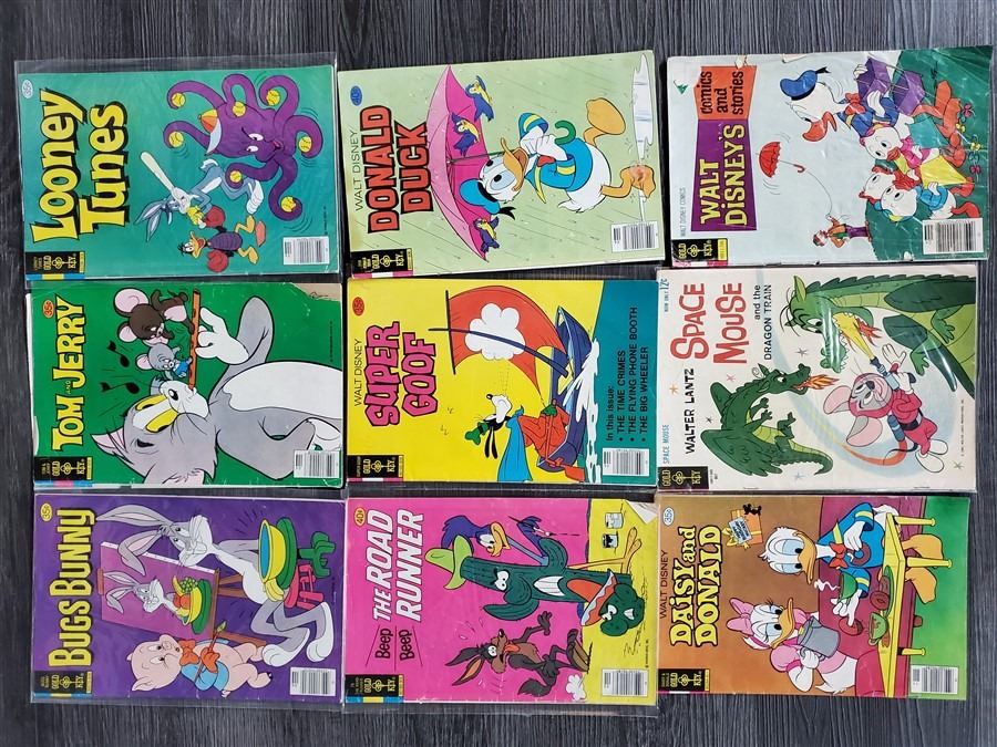 Lot of 9 Various Vintage Walt Disney and Warner Bros Comics - Gold Key - 17% Buyer Fee. Payment Processed through Live Auction World ( Visa or Master Card ) pick up Saturday, or Tuesday