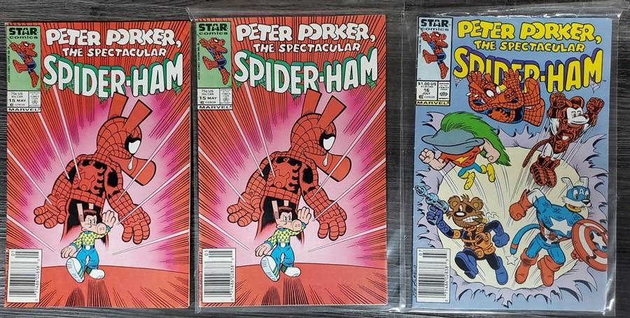 Lot of 9 Various Vintage Marvel Star Comics - Madballs and Peter Parker The Spectacular Spider-Ham - 17% Buyer Fee. Payment Processed through Live Auction World ( Visa or Master Card ) pick up Saturday, or Tuesday