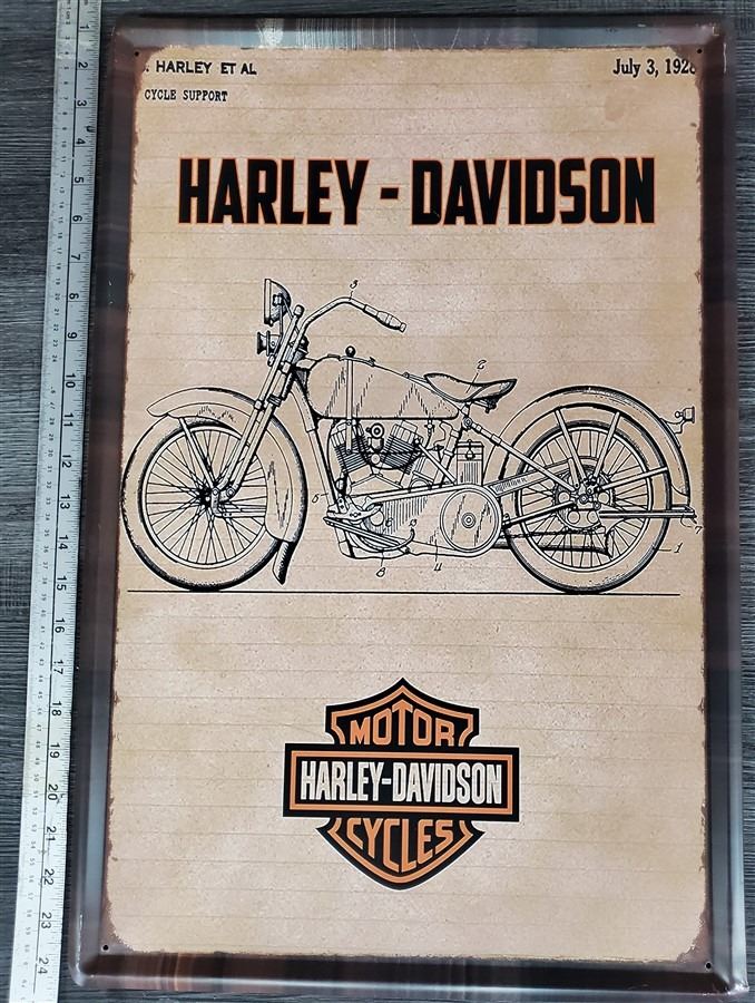 Large Vintage Looking Metal Sign - Harley Davidson - Apx 24" - 17% Buyer Fee. Payment Processed through Live Auction World ( Visa or Master Card ) pick up Saturday, or Tuesday