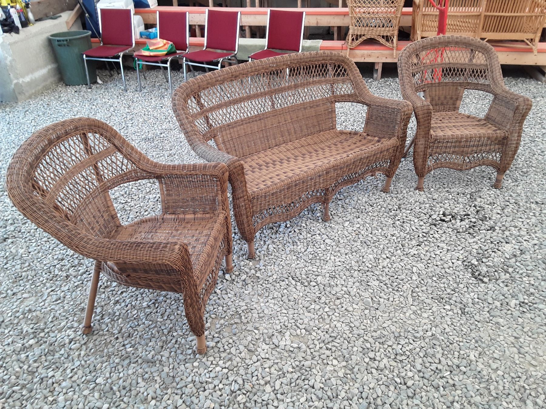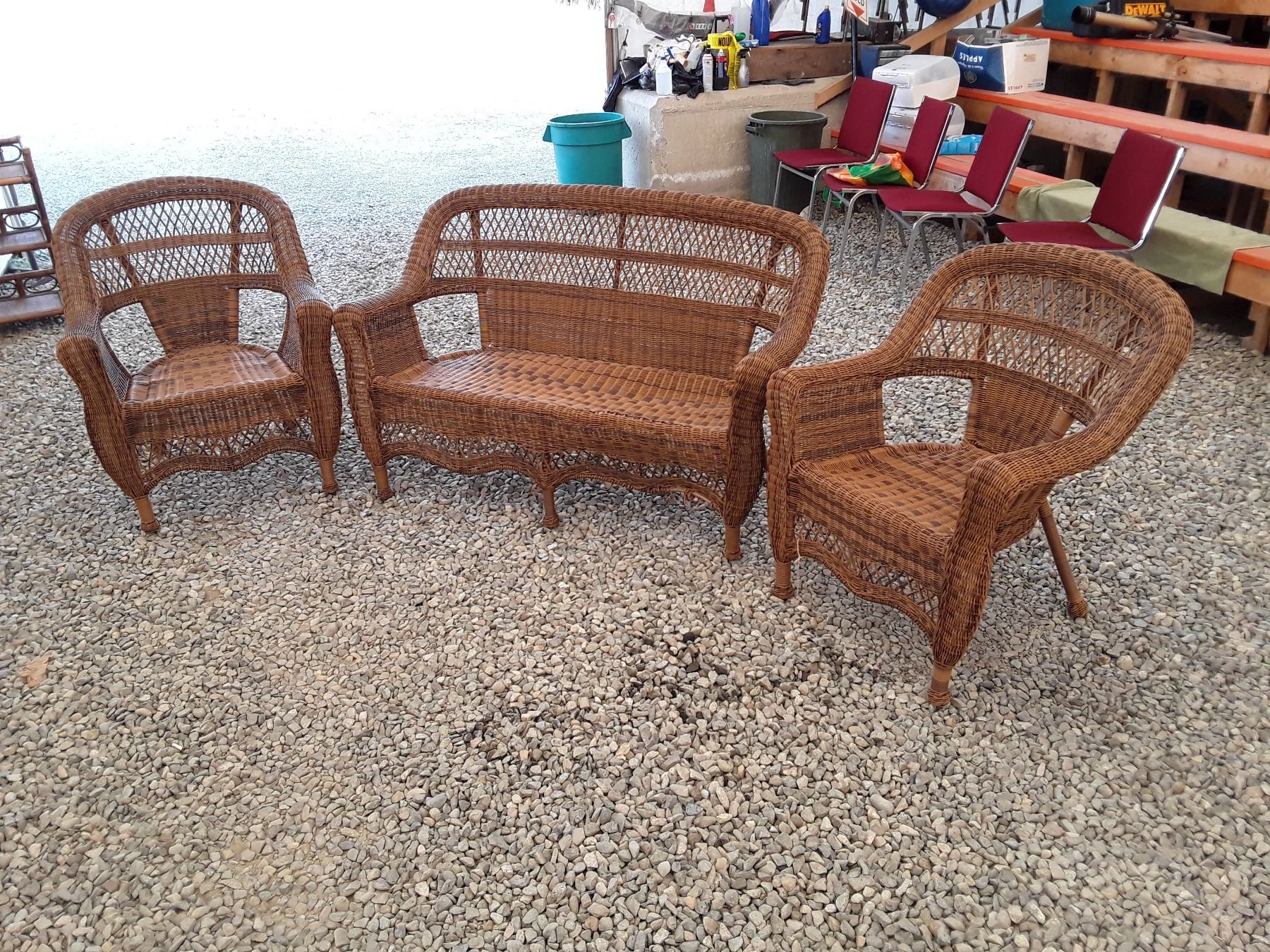 Wicker Patio Set Love Seat & 2 Chairs - 17% Buyer Fee. Payment Processed through Live Auction World ( Visa or Master Card ) pick up Saturday, or Tuesday
