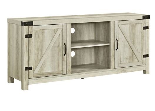 58 INCH BARN DOOR TV STAND WITH SIDE DOORS - WHITE OAK, IN BOX- RETAIL $399