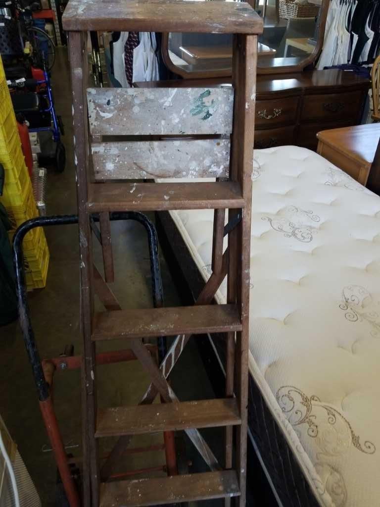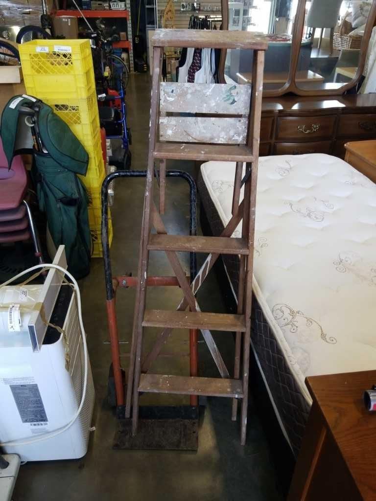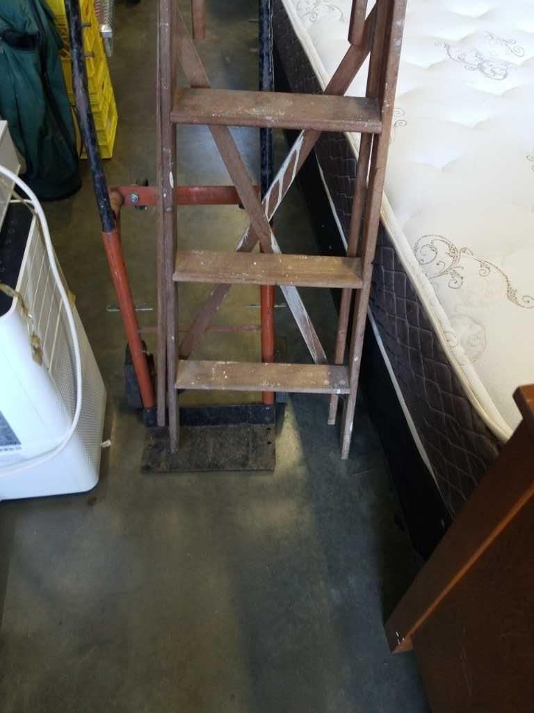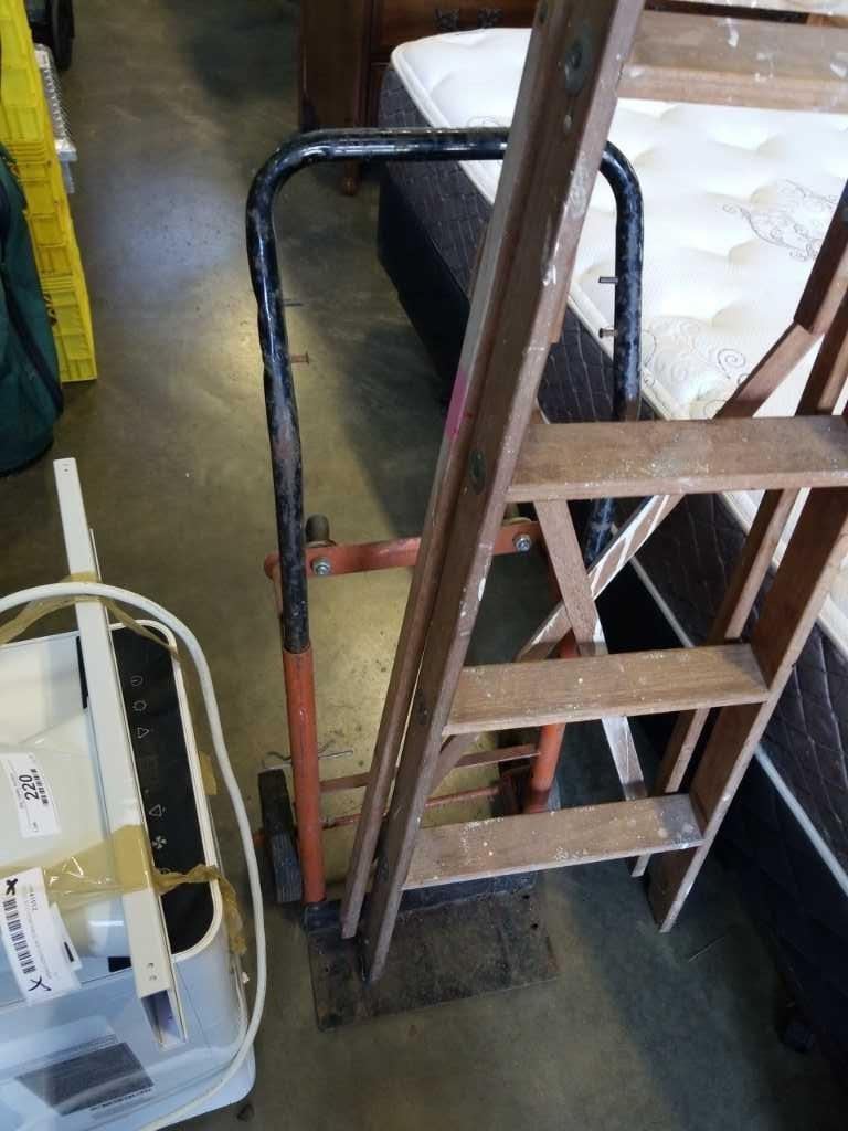5FT WOODEN A FRAME LADDER STEPSTOOL AND 2 WHEEL DOLLY