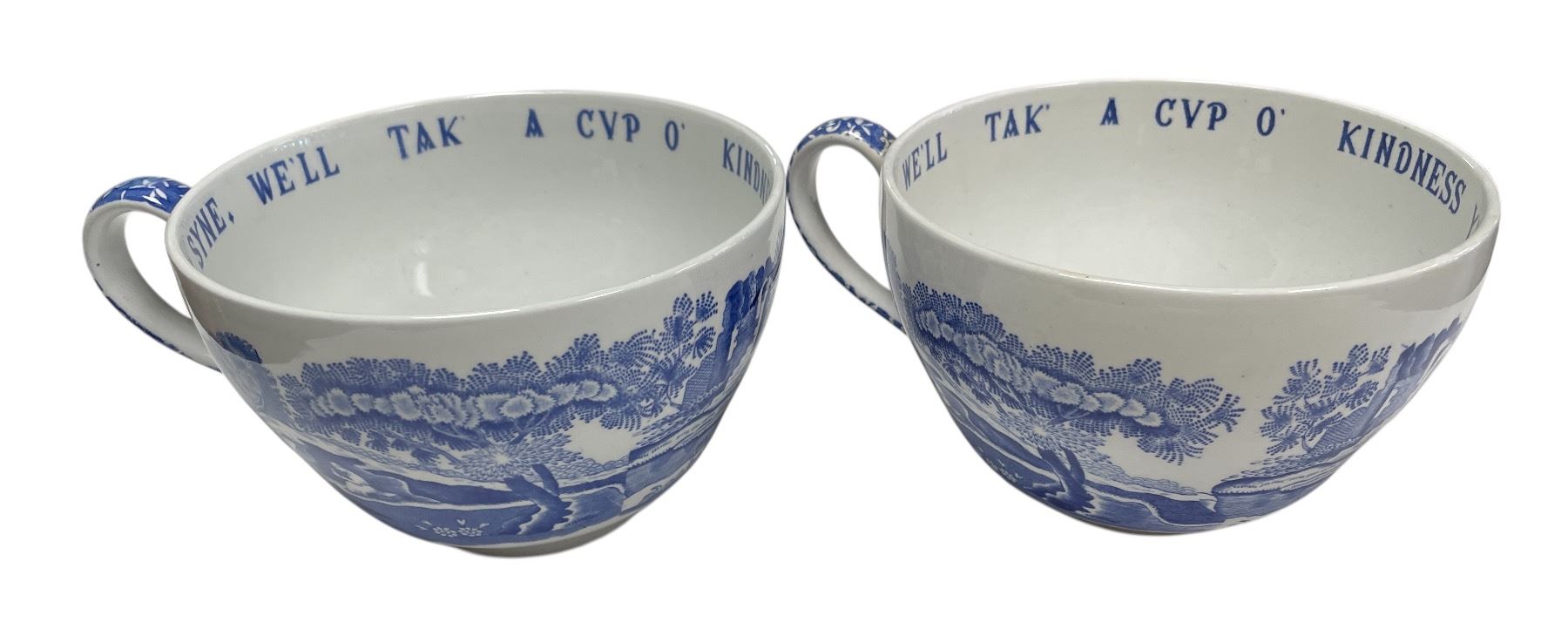 5pcs Of Vintage Blue White Spode Porcelain Dishware: Cups, Bowls, Plate