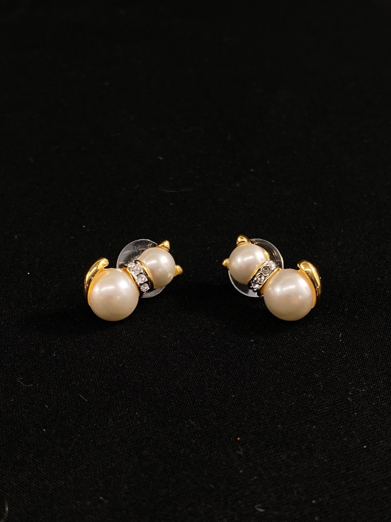 5th Avenue Collection "Cream Puff" Cat Earrings w/ Genuine Austrian Crystals & 14KT Posts