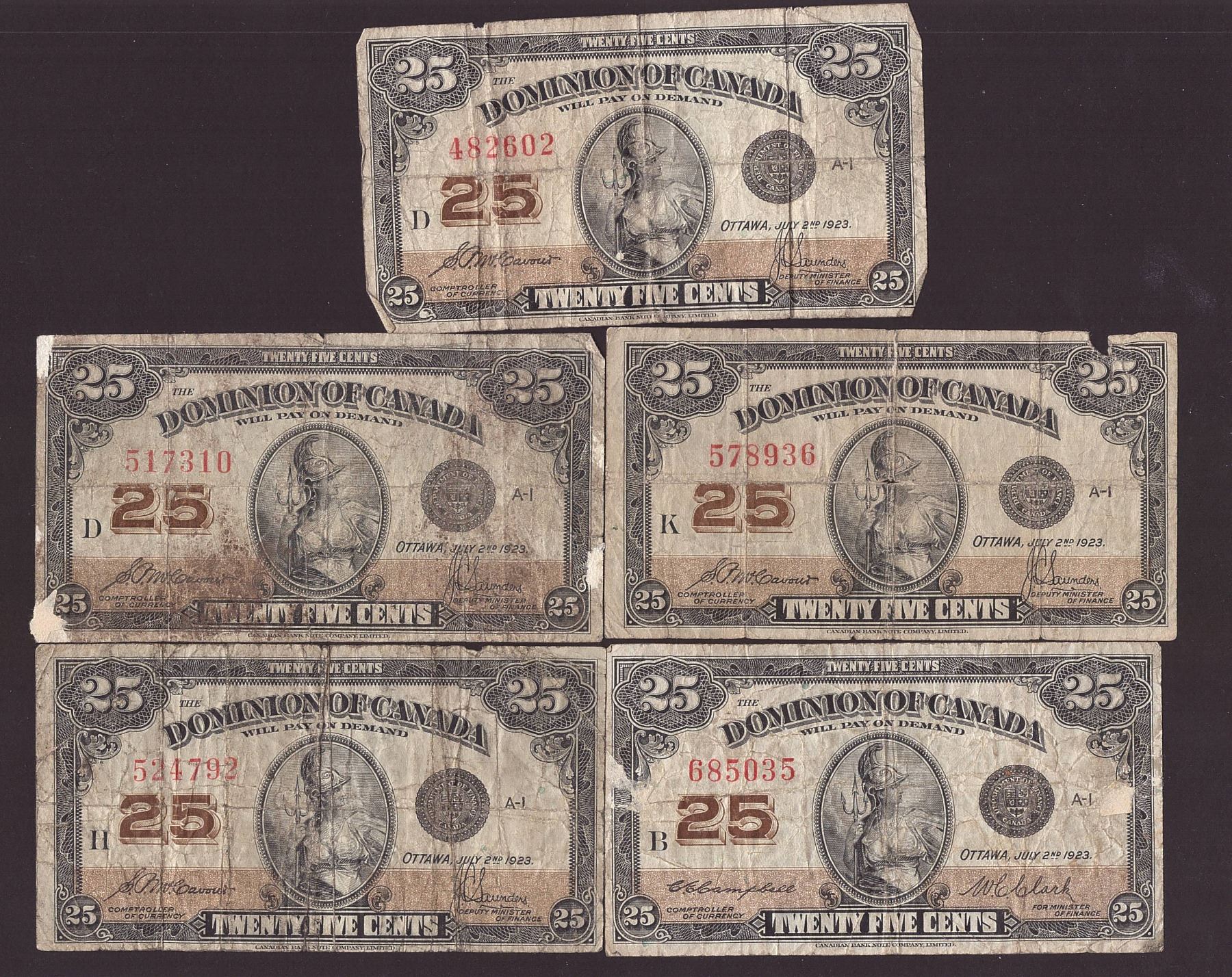 5x 1923 Dominion of Canada 25 Cent Banknote paper money Shinplaster