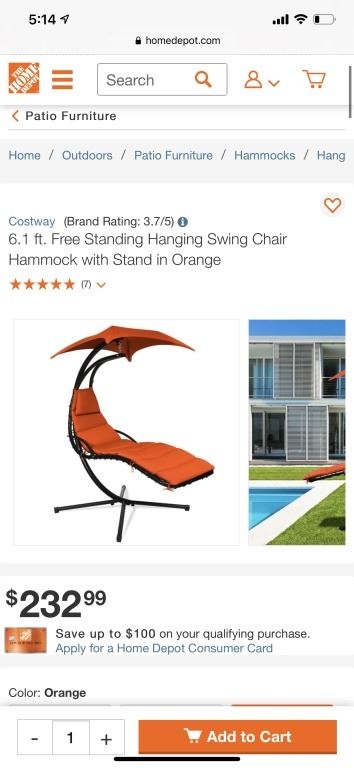 6.1 ft. Free Standing Hanging Swing Chair Hammock with Stand in Orange