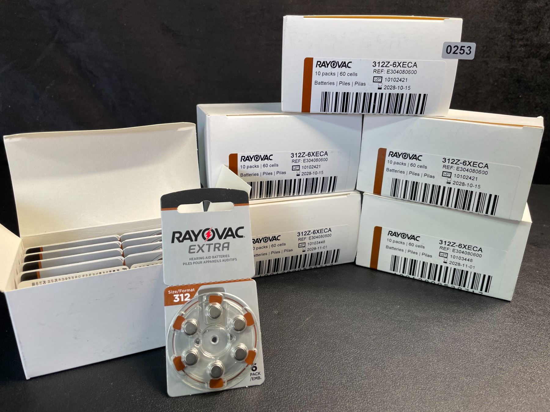 6 10-Pack Boxes of Rayovac Extra Size 312 Hearing Aid Batteries (60 Batteries Per Box/360 Total) NEW
