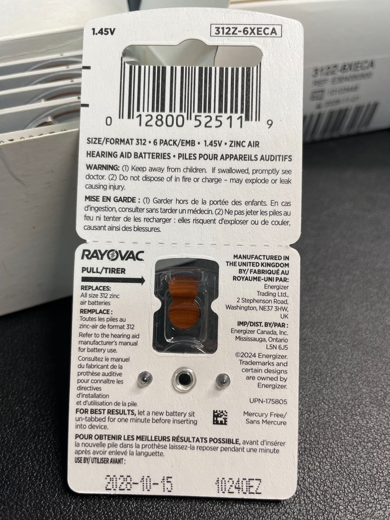 - RAYOVAC Extra Size 312 Hearing Aid Batteries