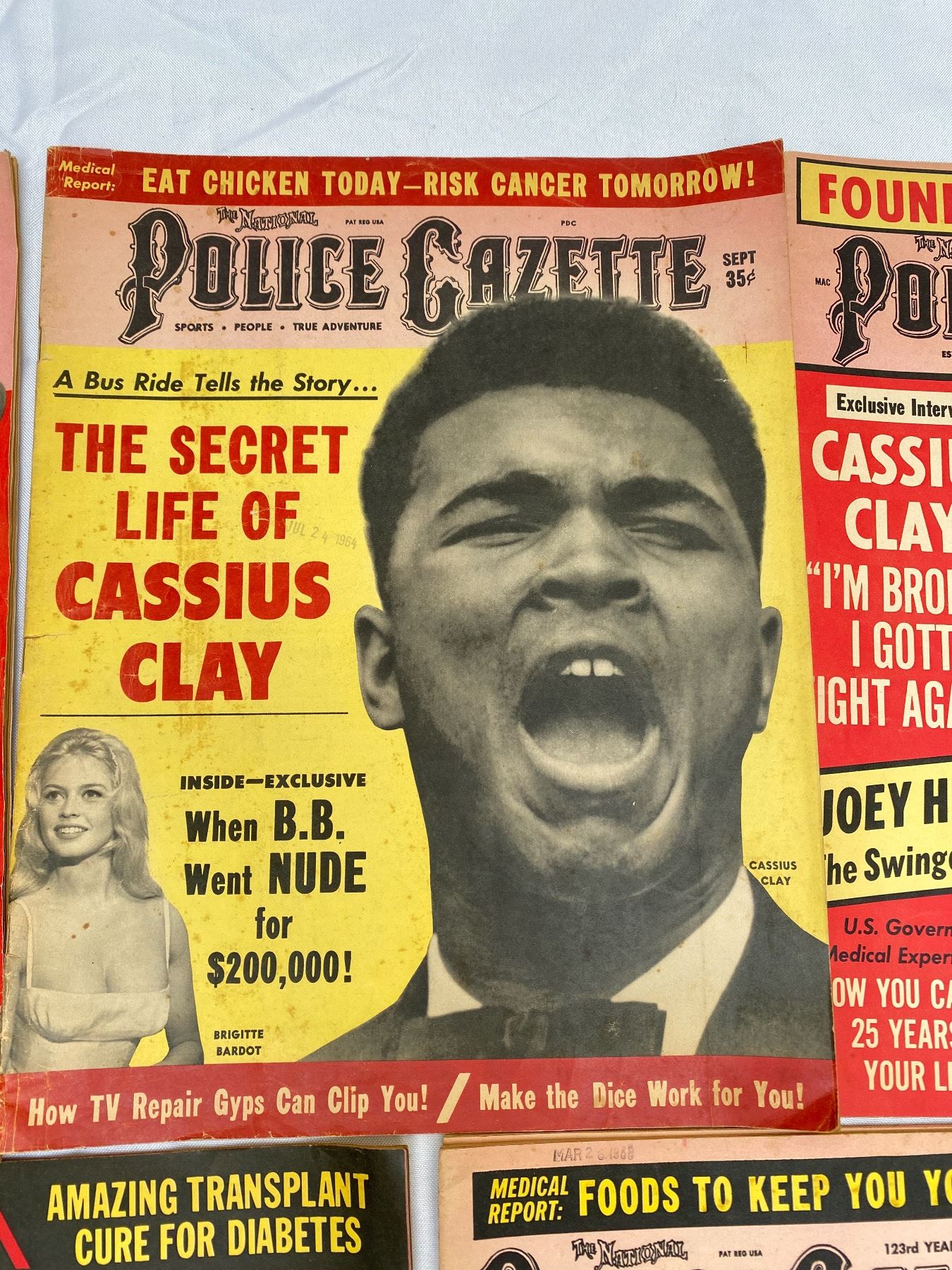 6 1960's Police Gazzet Magazines Featuring Sofia Lauren, Casius Clay etc