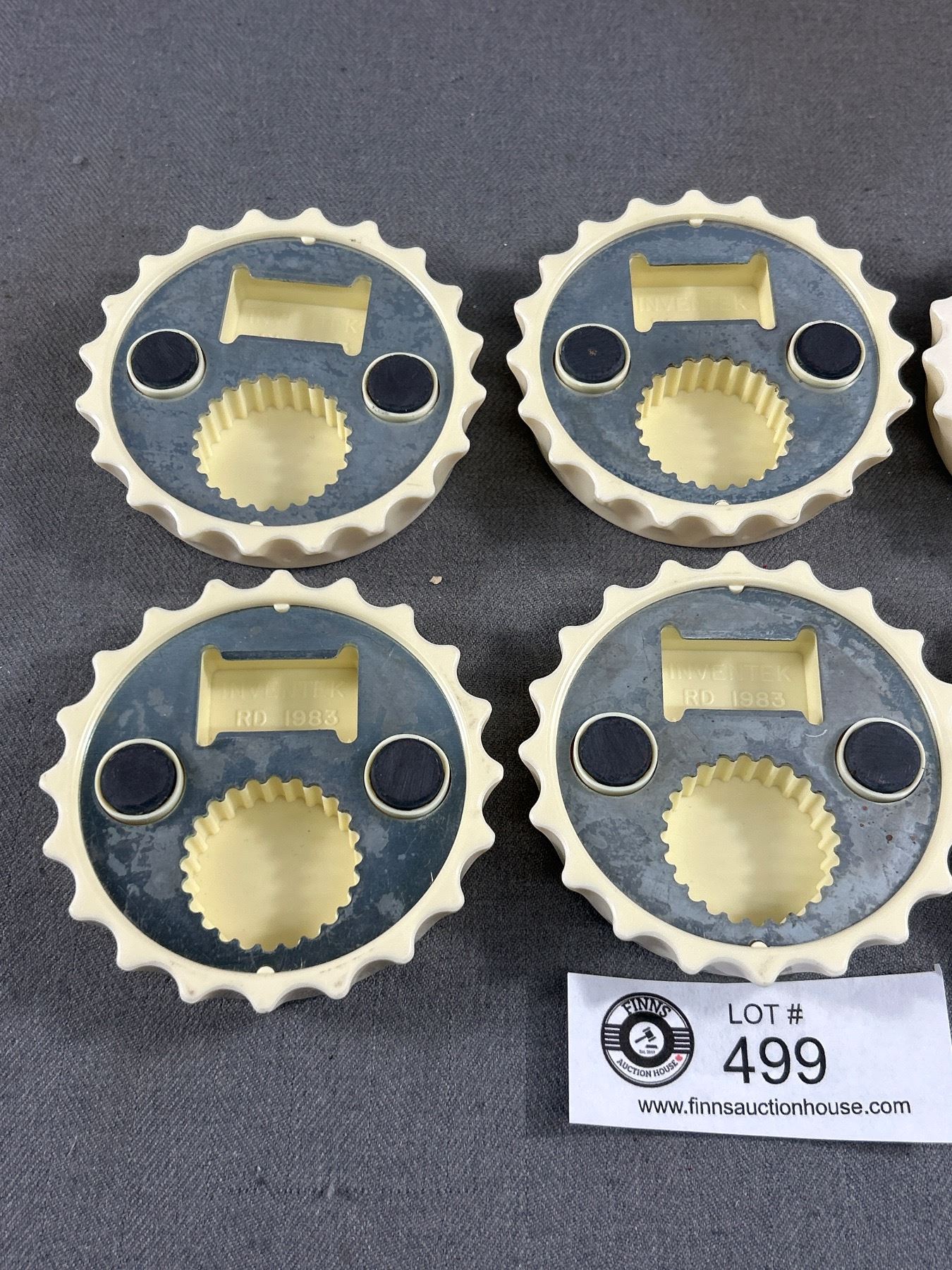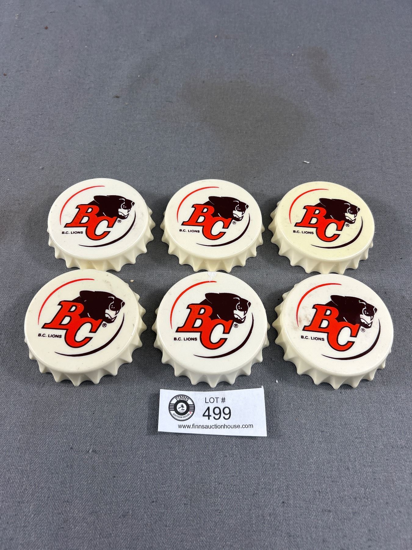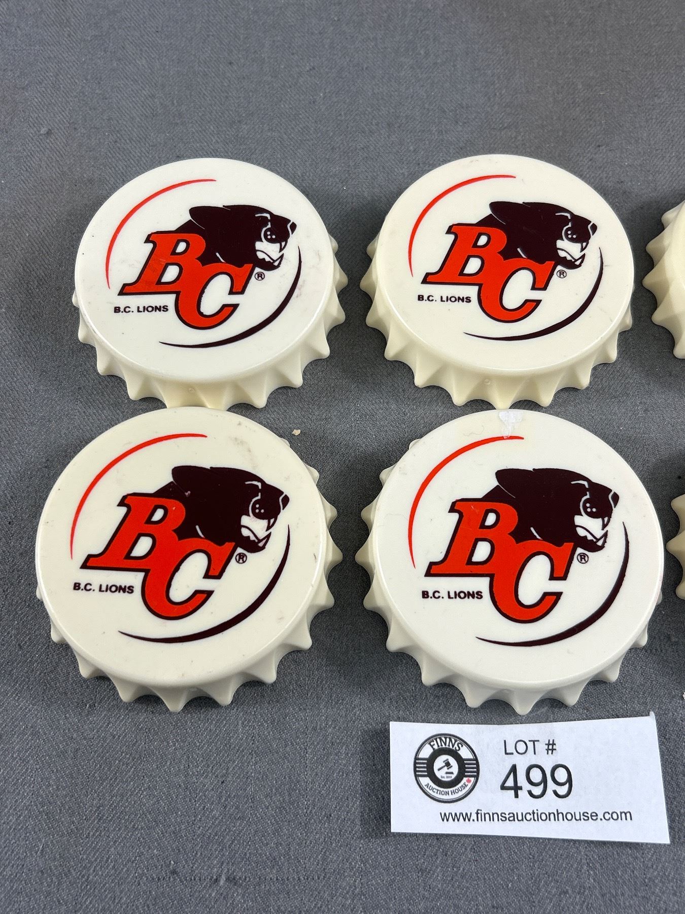 6 - 1983 BC Lions Magnetic Bottle Openers. Approx. 3" Diam.