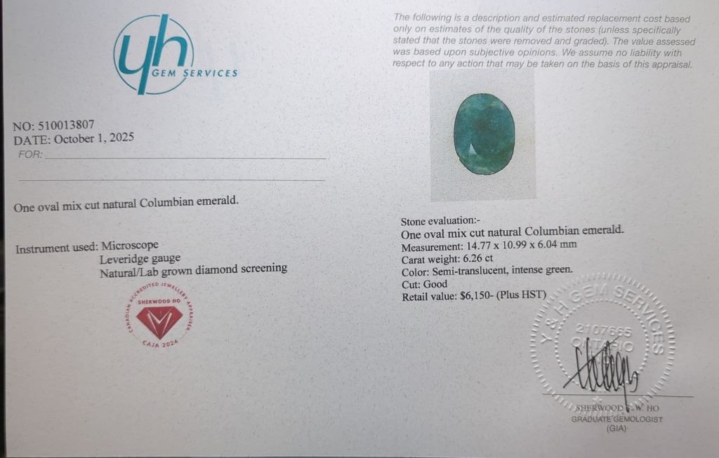 6.26 CT CERTIFIED EMERALD GEMSTONE ($6,150 APPRAISAL)