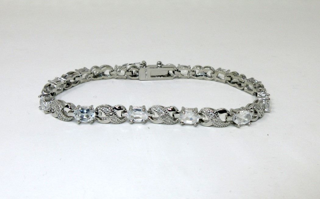 VS Clarity. Set with 12 oval topaz gemstones. Figure 8 links. Includes $400 certificate.