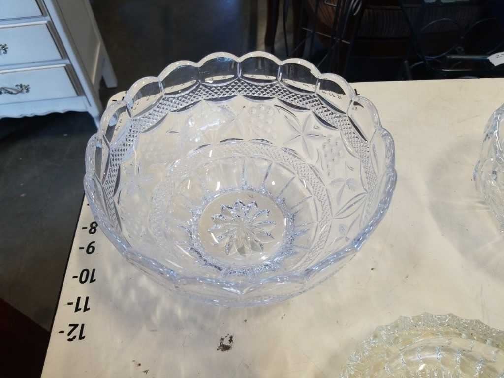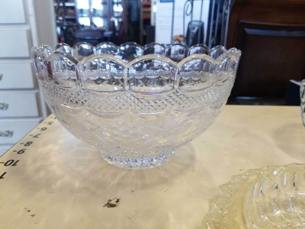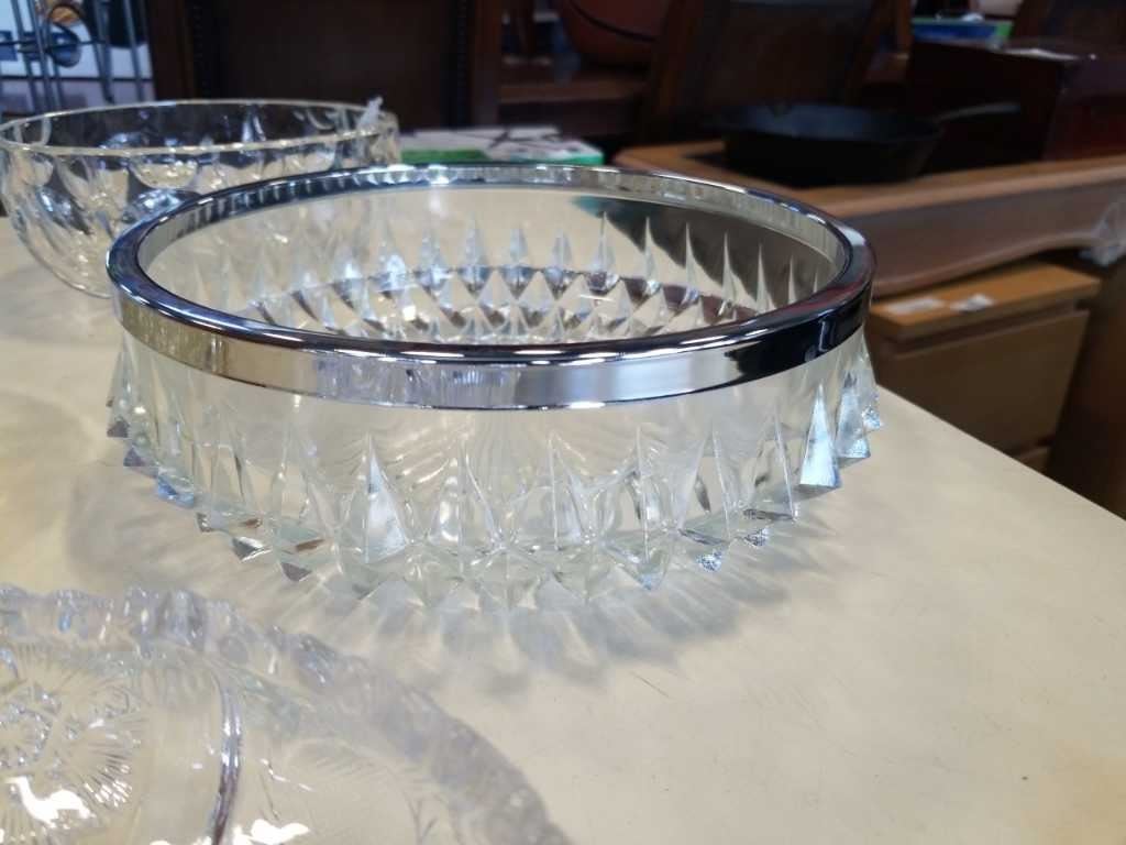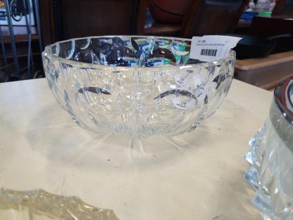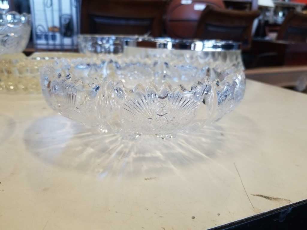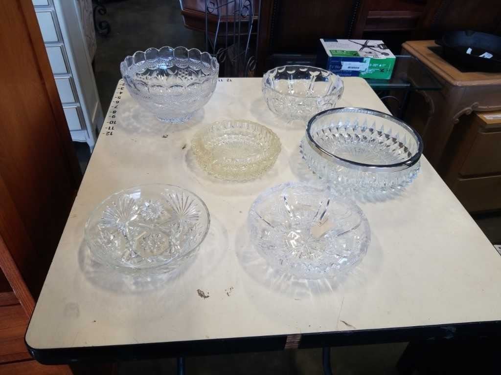 6 ANTIQUE CRYSTAL AND GLASS SERVING BOWLS