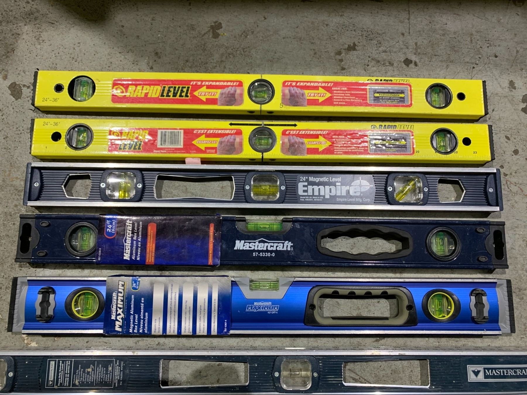6 ASSORTED LEVELS INCLUDING; RAPIDLEVEL, MASTERCRAFT & MORE