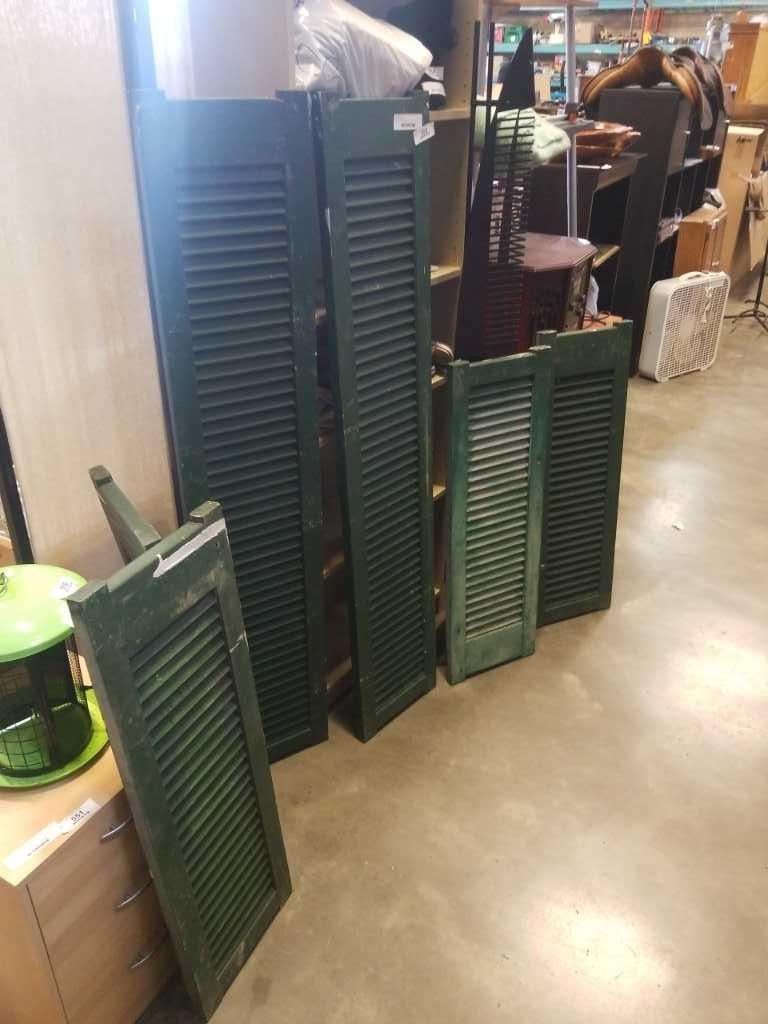 6 Antique wood shutters aprrox 3ft and 5ft high