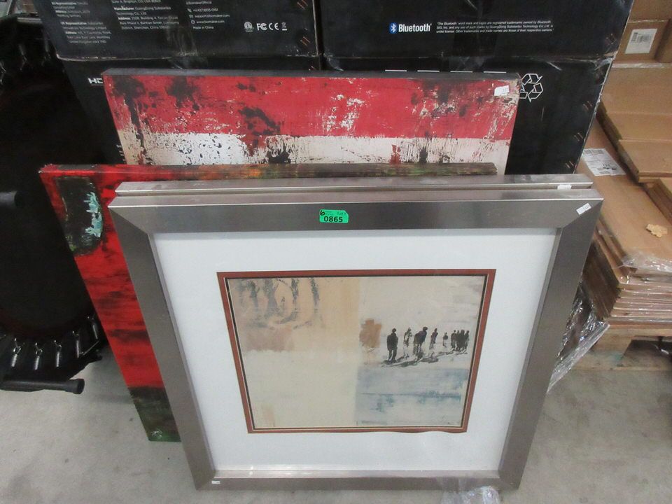 2 Gerard Wall Art - 34" x 34" framed, Insanity Poster Mounted On Board- 30" x 40", 2 Framed Snake Prints, Canvas Wall Art of Guitarist - 19" x 24", & Roth Canvas Wall Art - 34" x 34".