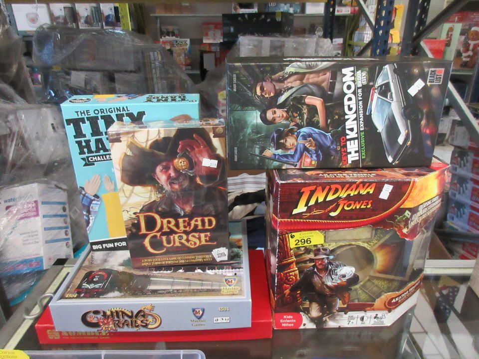 Dread Curse Game is in sealed box. Tiny Hands game, Keys to the Kingdom game, China Rails game, Numble game, and Indiana Jones Akator Temple Race game are unsealed.