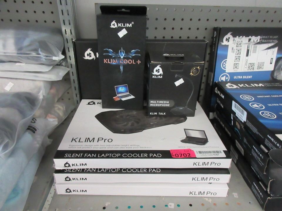 Multimedia microphone, Klim Cool+ and 4 assorted laptop cooling pads.