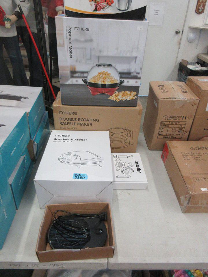 Mug warmer, sandwich maker, food mincer, waffle maker & jar sealer